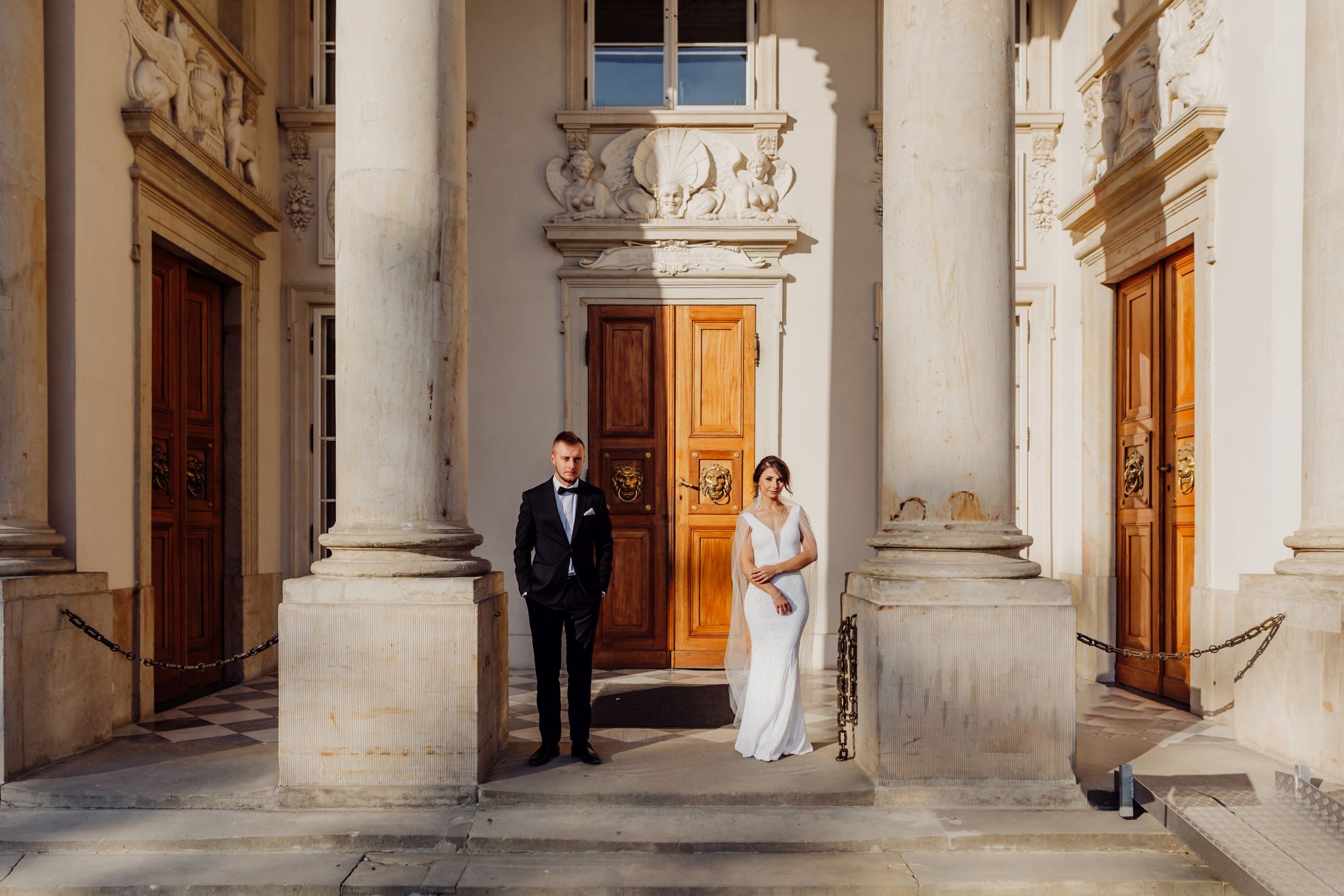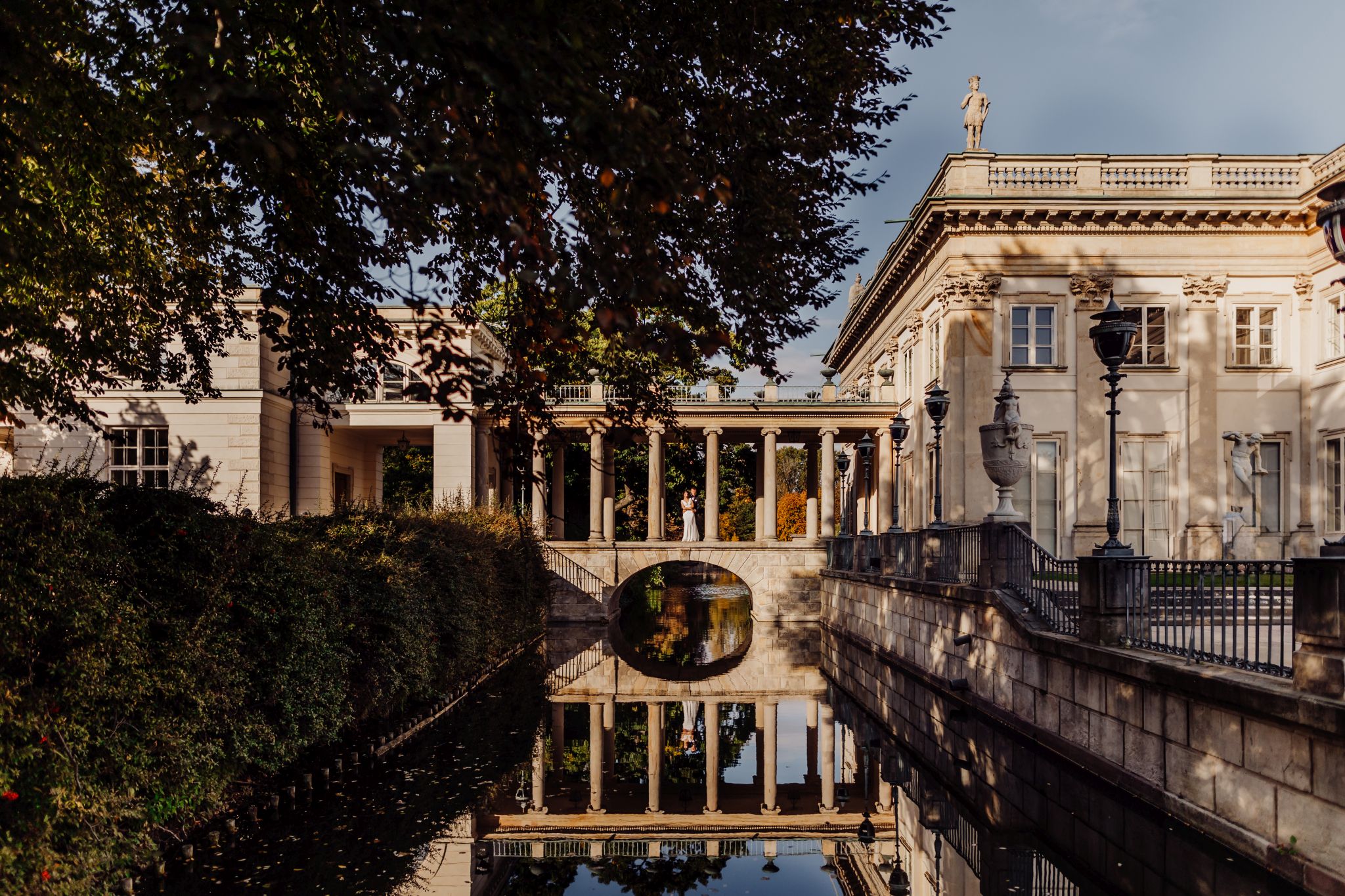 Jeśli myślicie o eleganckiej, ponadczasowej sesji ślubnej w Warszawie — Łazienki Królewskie to jedno z najlepszych miejsc.