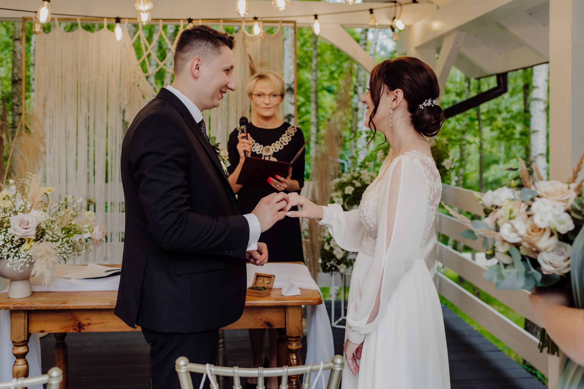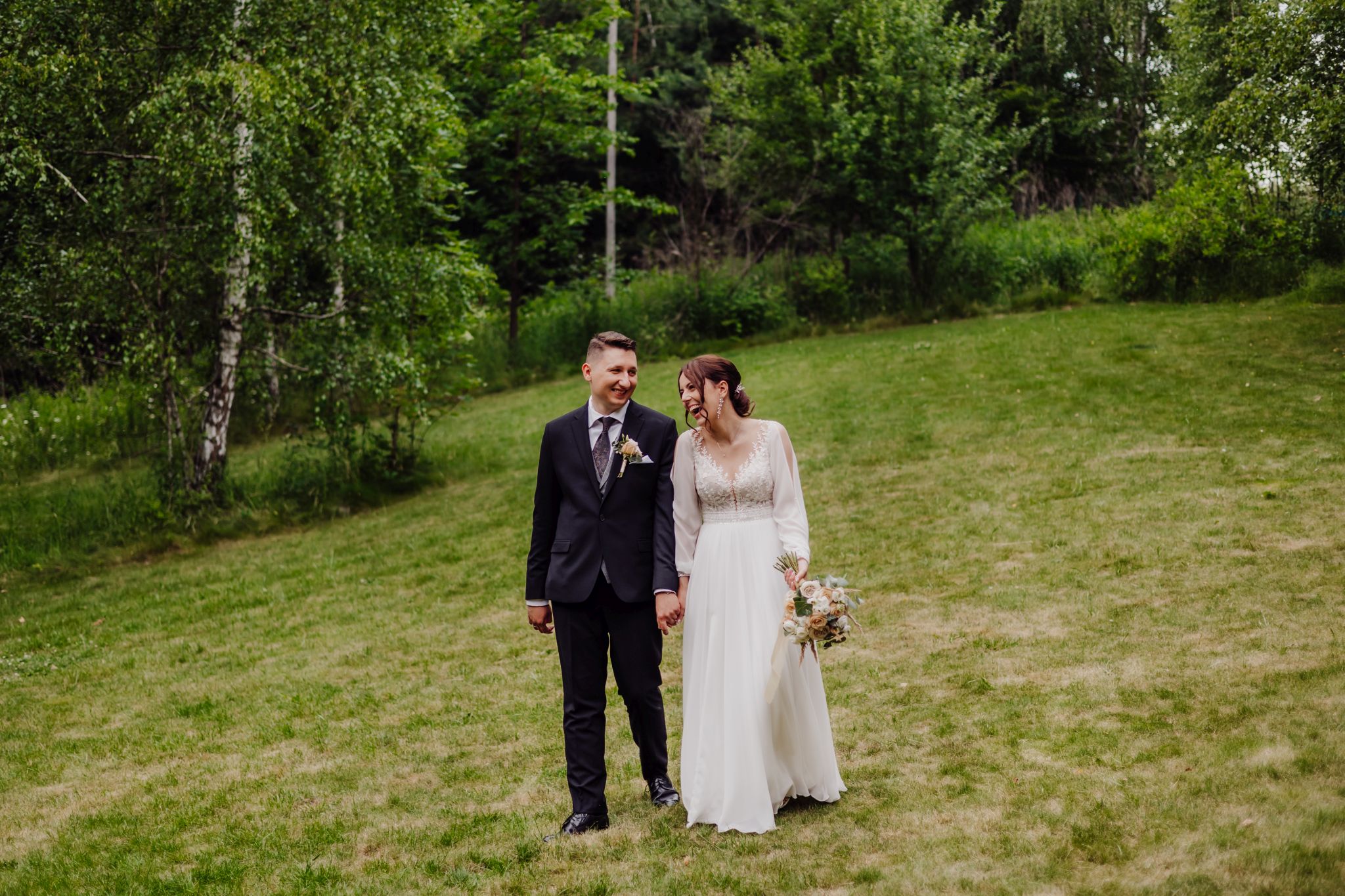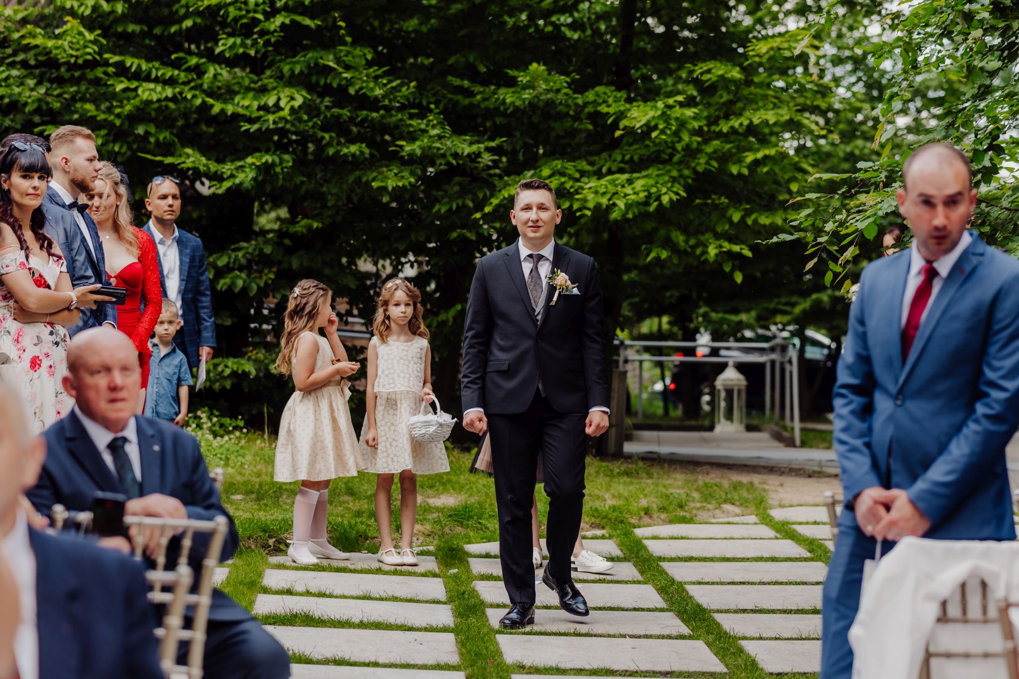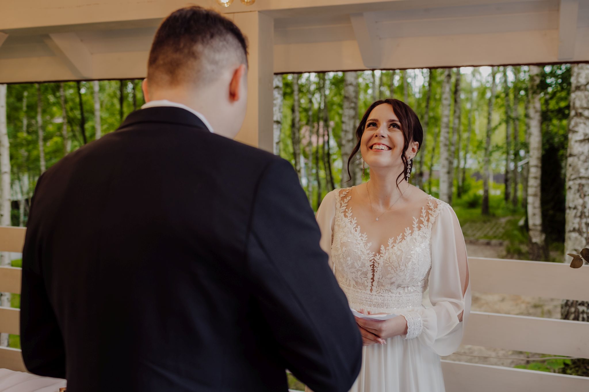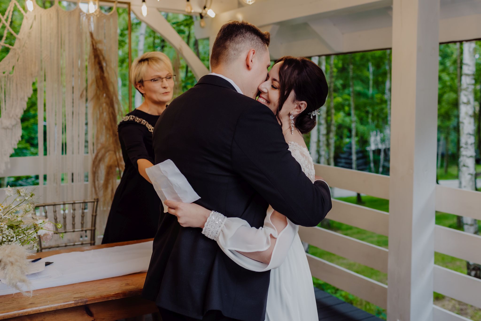 Tutaj wszystko zaczęło się spokojnie — wśród zieleni, w miejscu, gdzie natura robi tło, a nie konkurencję. Ceremonia plenerowa była prosta, lekka i bardzo autentyczna. Bez przesady, bez napięcia — dokładnie tak, jak powinno to wyglądać.