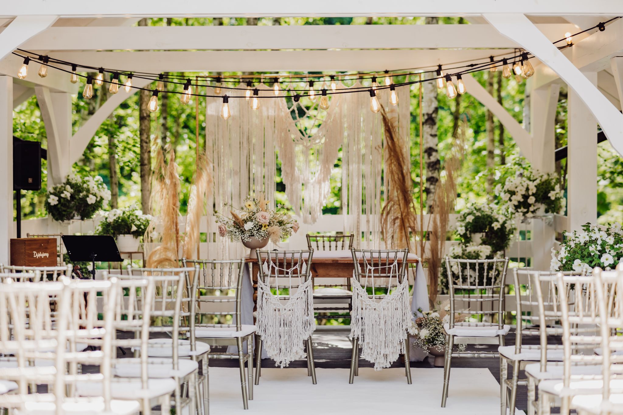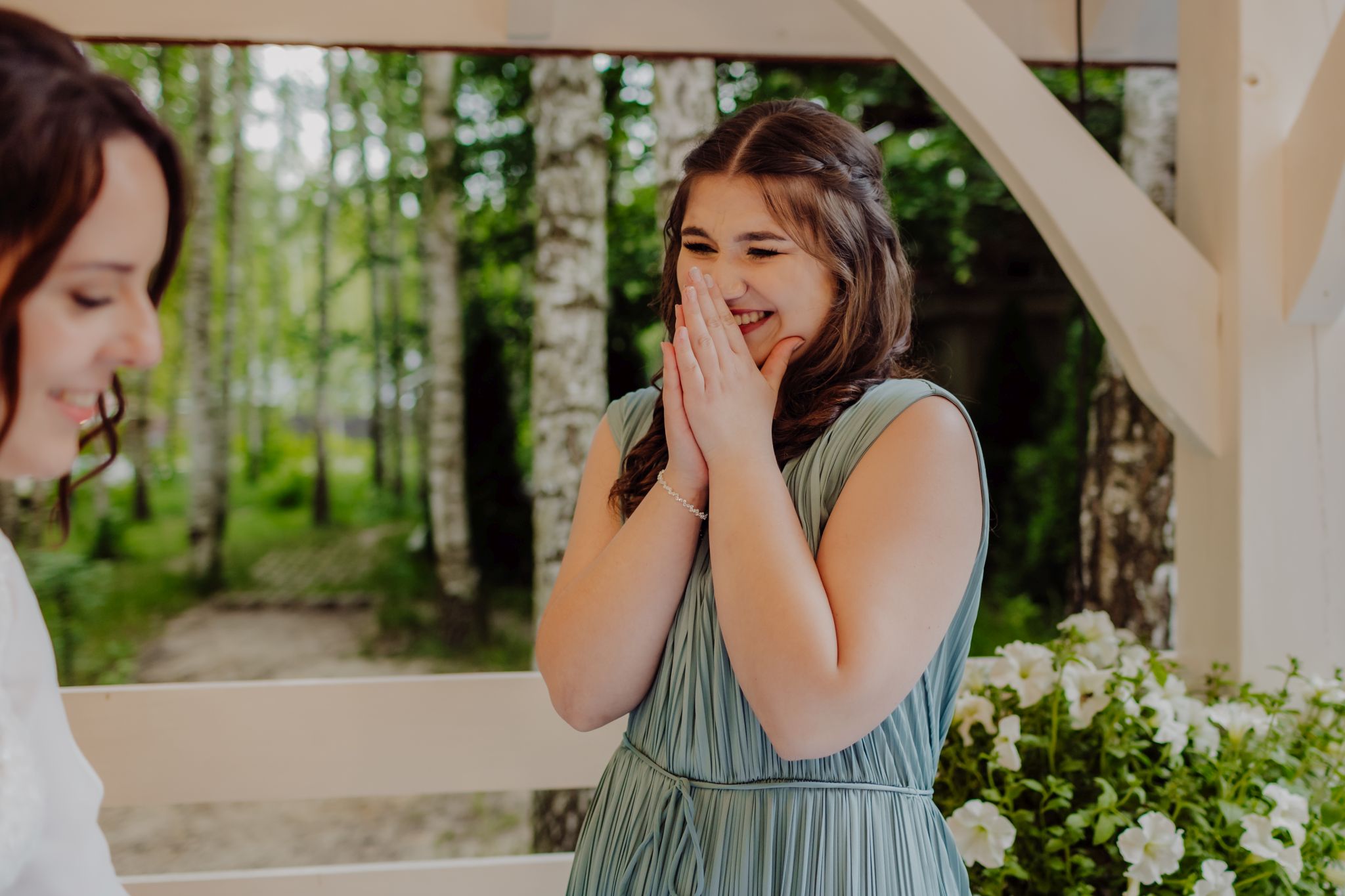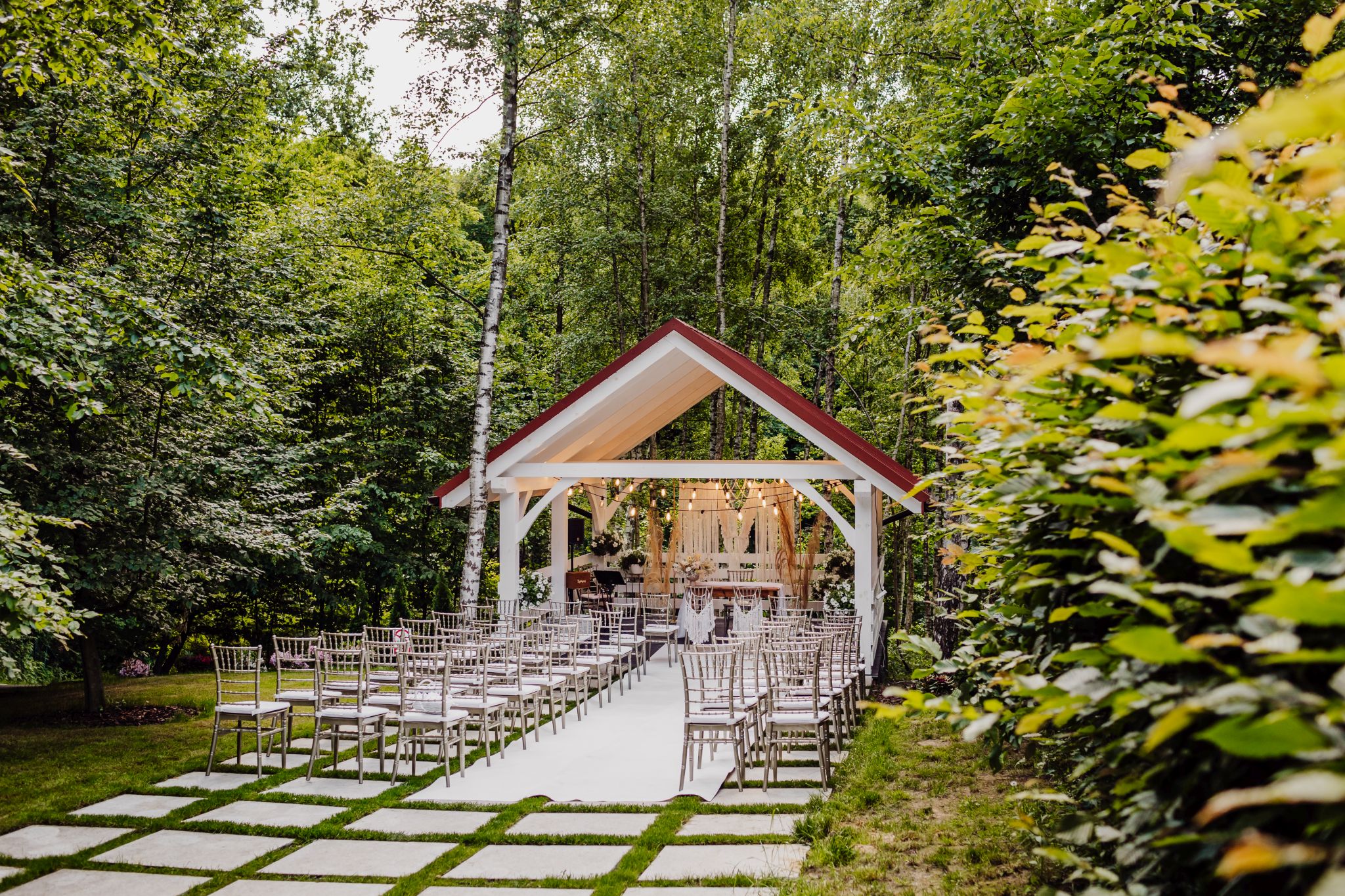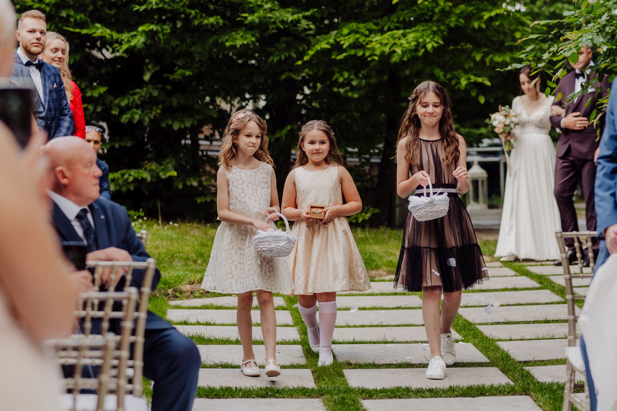 Tutaj wszystko zaczęło się spokojnie — wśród zieleni, w miejscu, gdzie natura robi tło, a nie konkurencję. Ceremonia plenerowa była prosta, lekka i bardzo autentyczna. Bez przesady, bez napięcia — dokładnie tak, jak powinno to wyglądać.