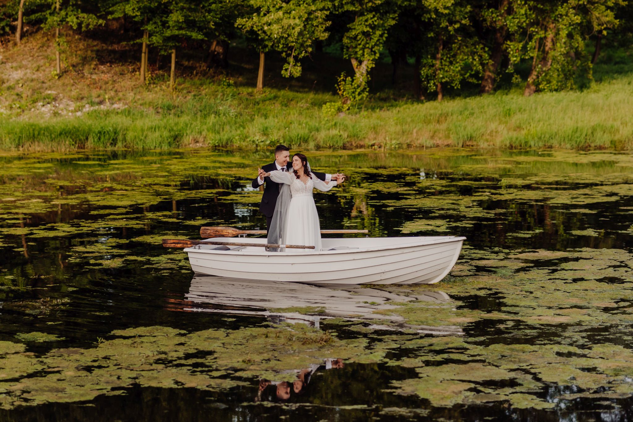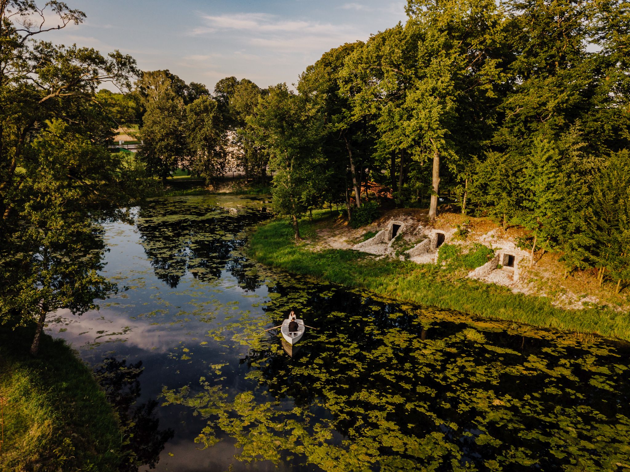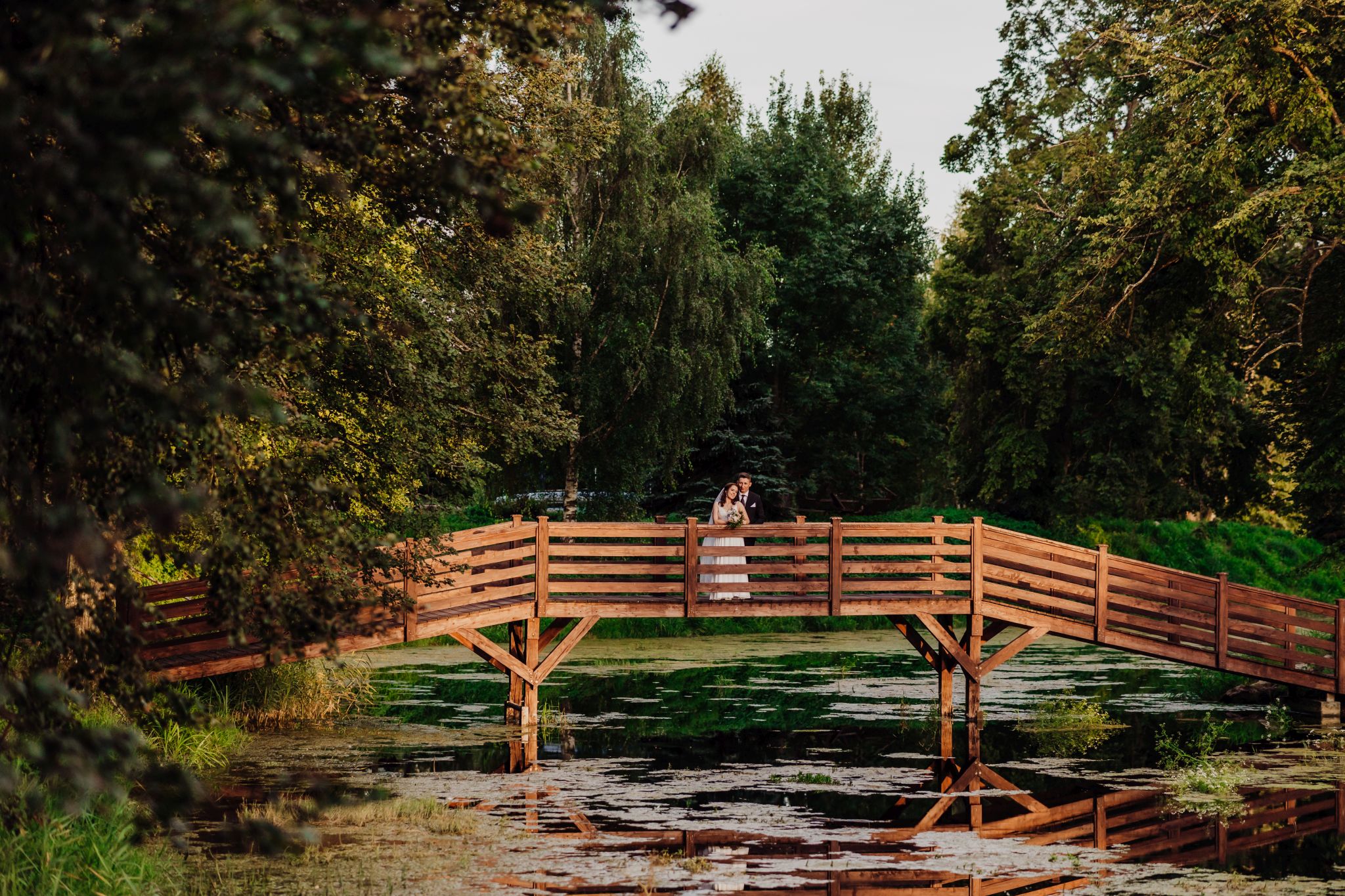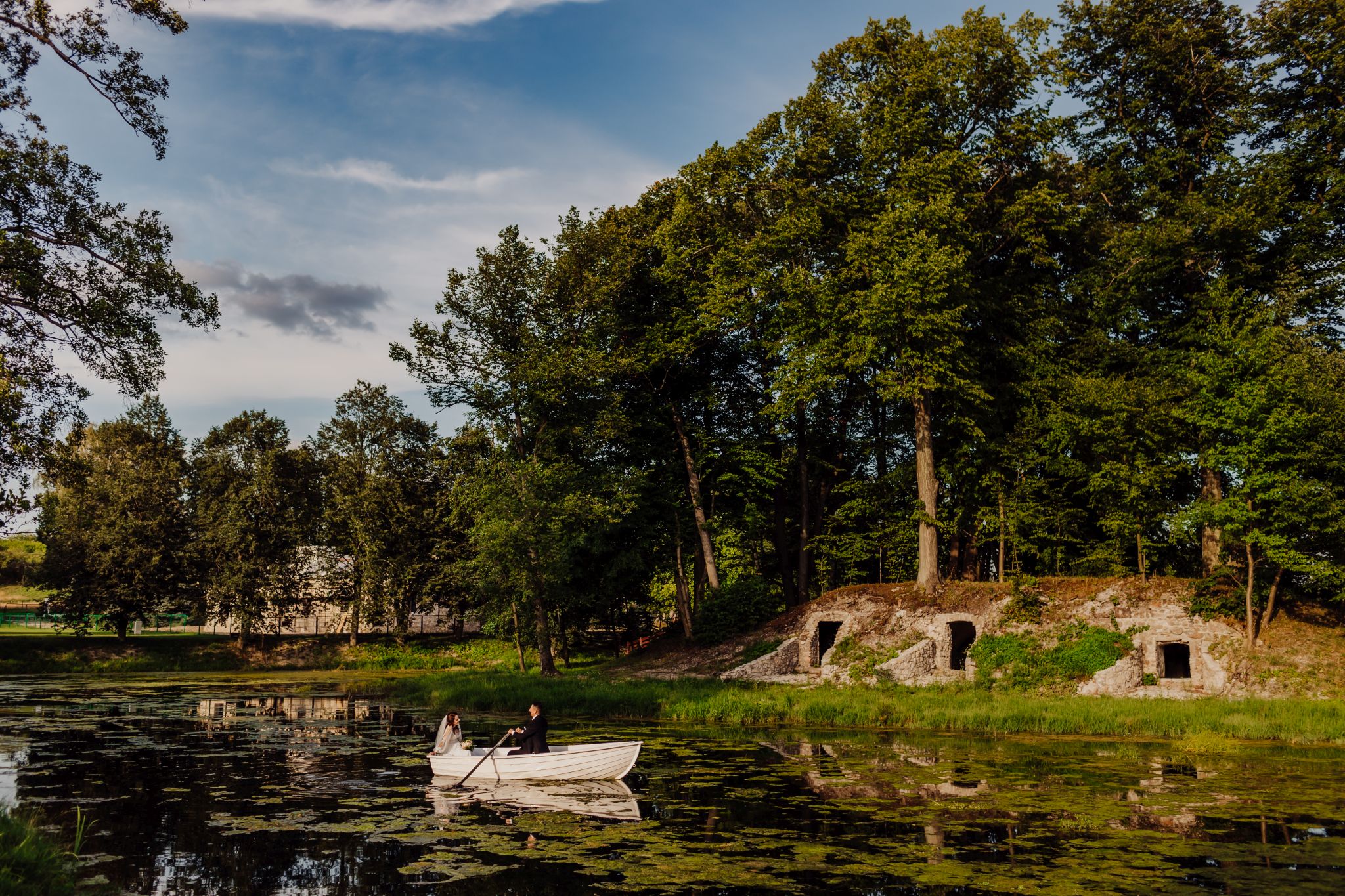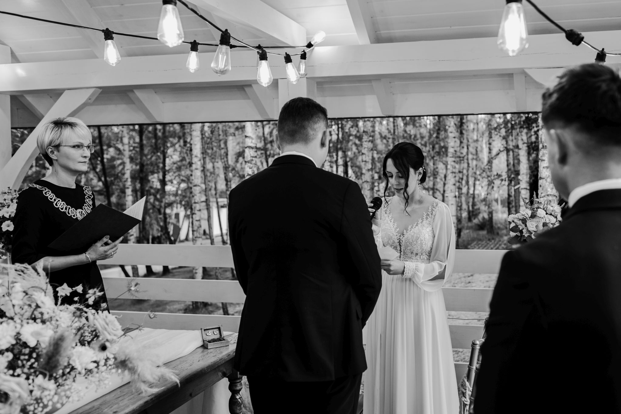 Tutaj wszystko zaczęło się spokojnie — wśród zieleni, w miejscu, gdzie natura robi tło, a nie konkurencję. Ceremonia plenerowa była prosta, lekka i bardzo autentyczna. Bez przesady, bez napięcia — dokładnie tak, jak powinno to wyglądać.