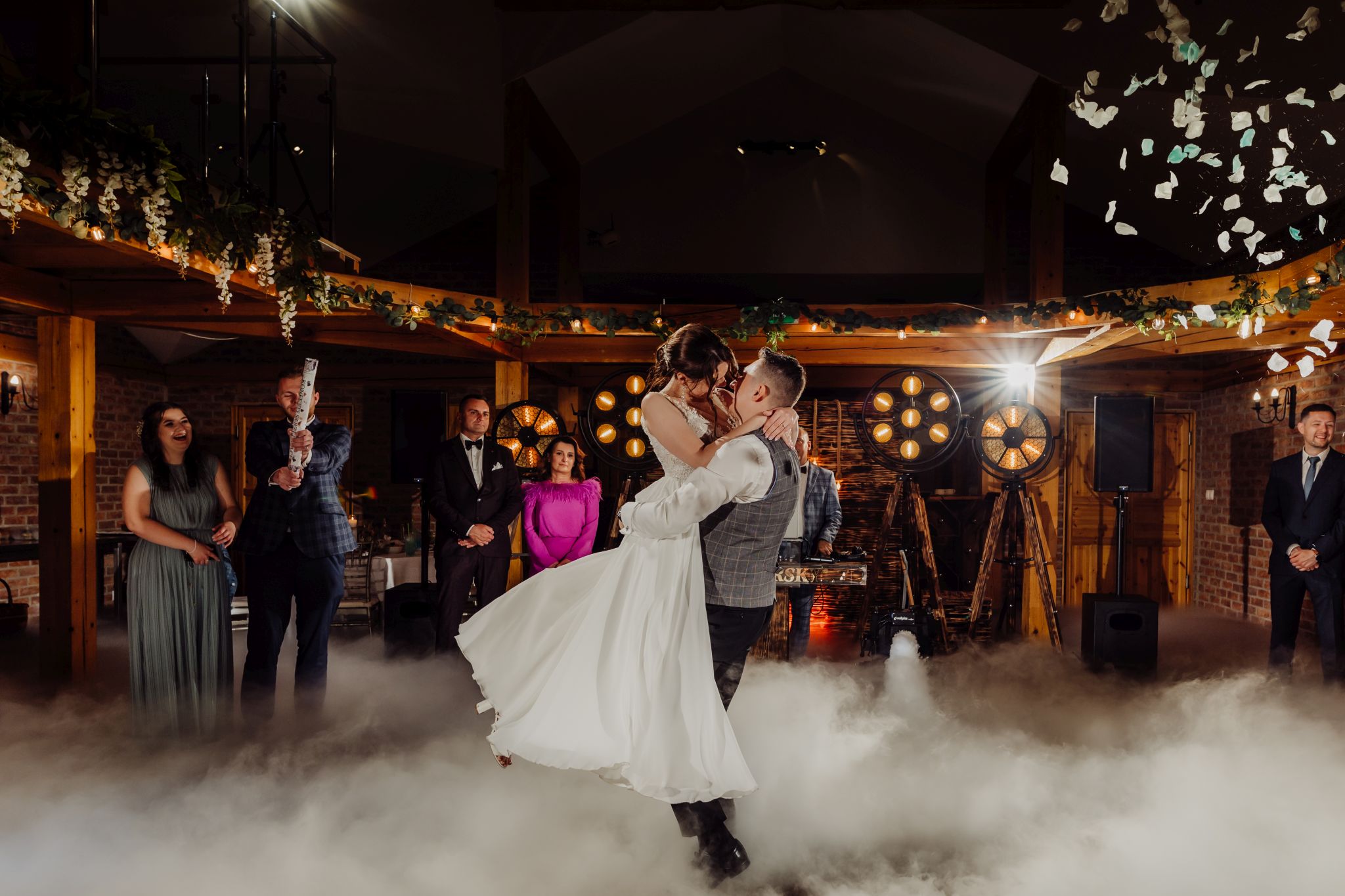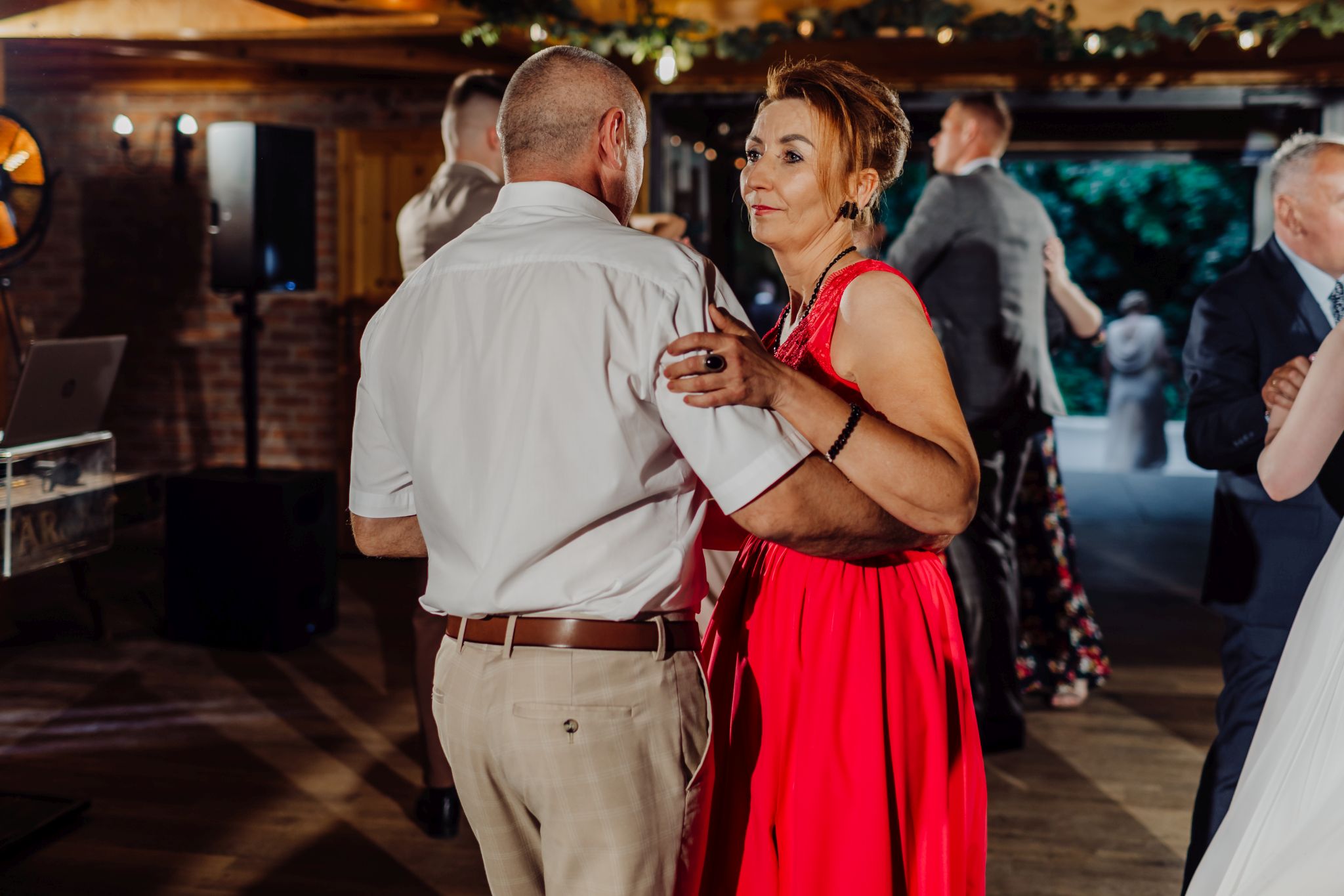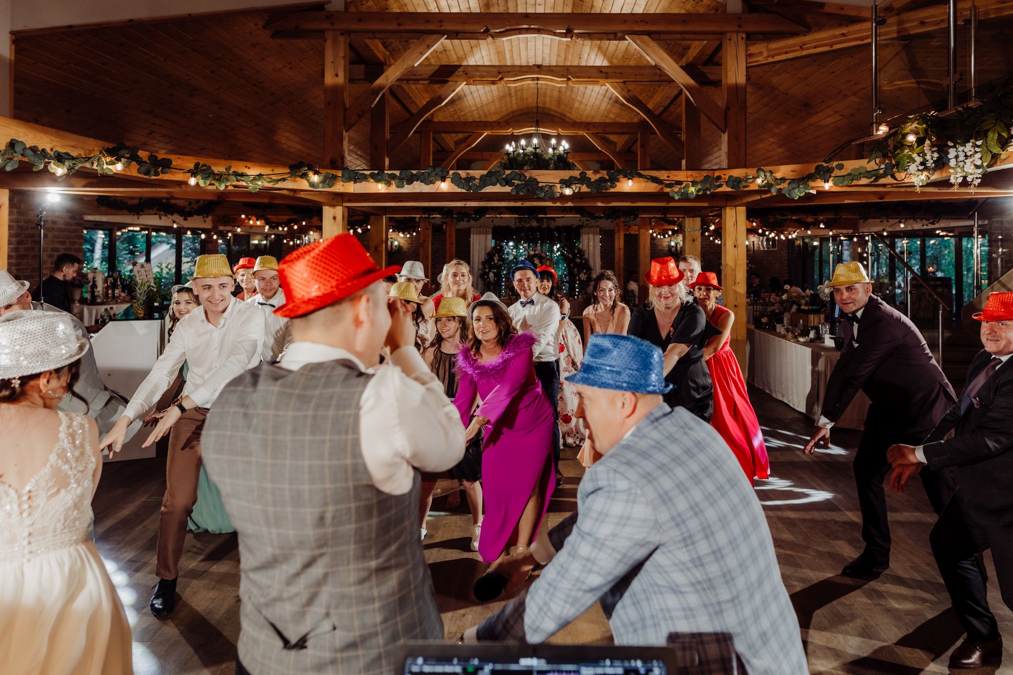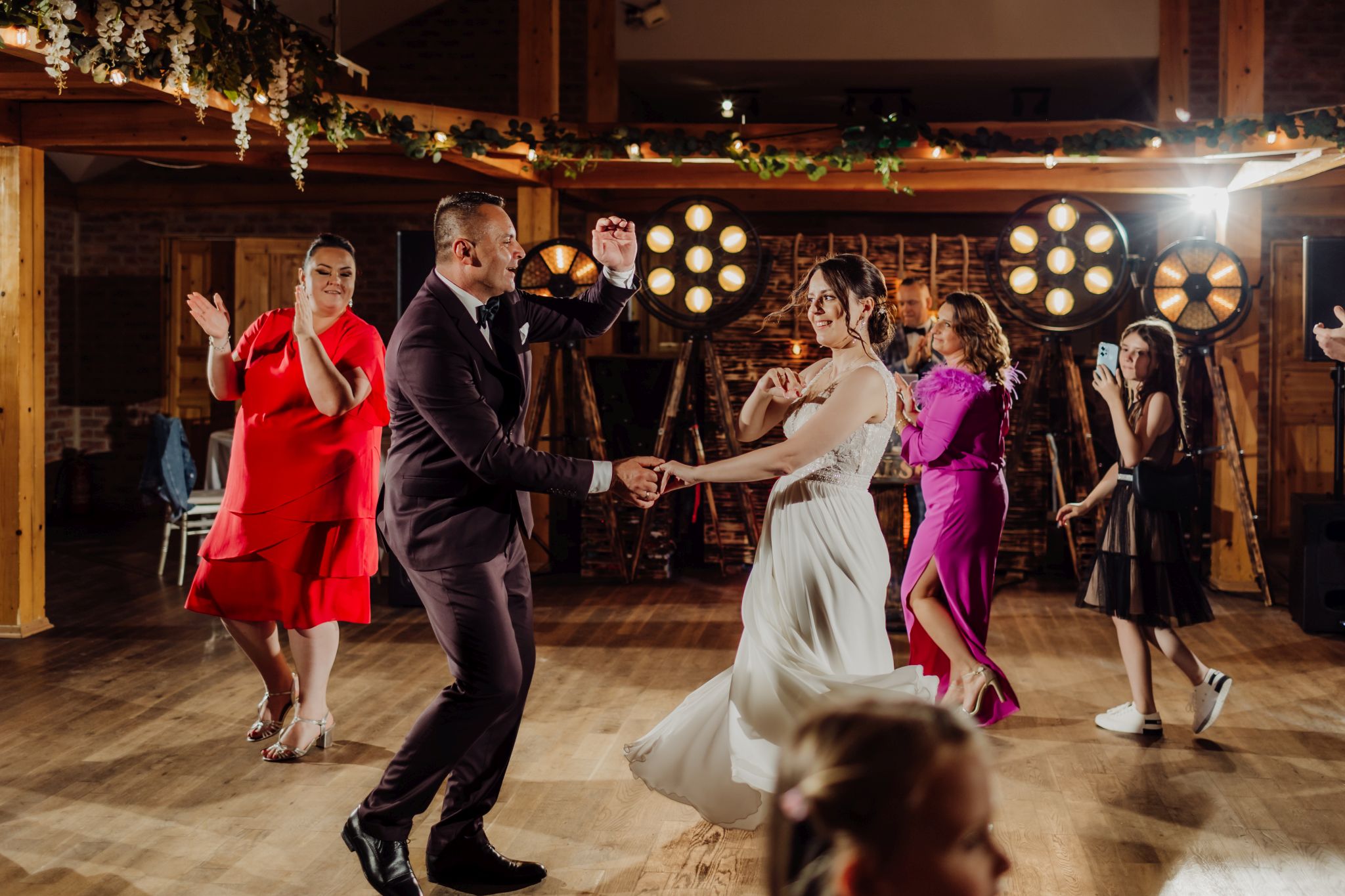 Energia wesela rosła z każdą godziną — od pierwszego tańca w ciężkim dymie, przez spontaniczne momenty na parkiecie, aż po totalny luz pod koniec nocy. DJ zrobił robotę, ale najważniejsze było to, że ludzie po prostu chcieli się bawić.