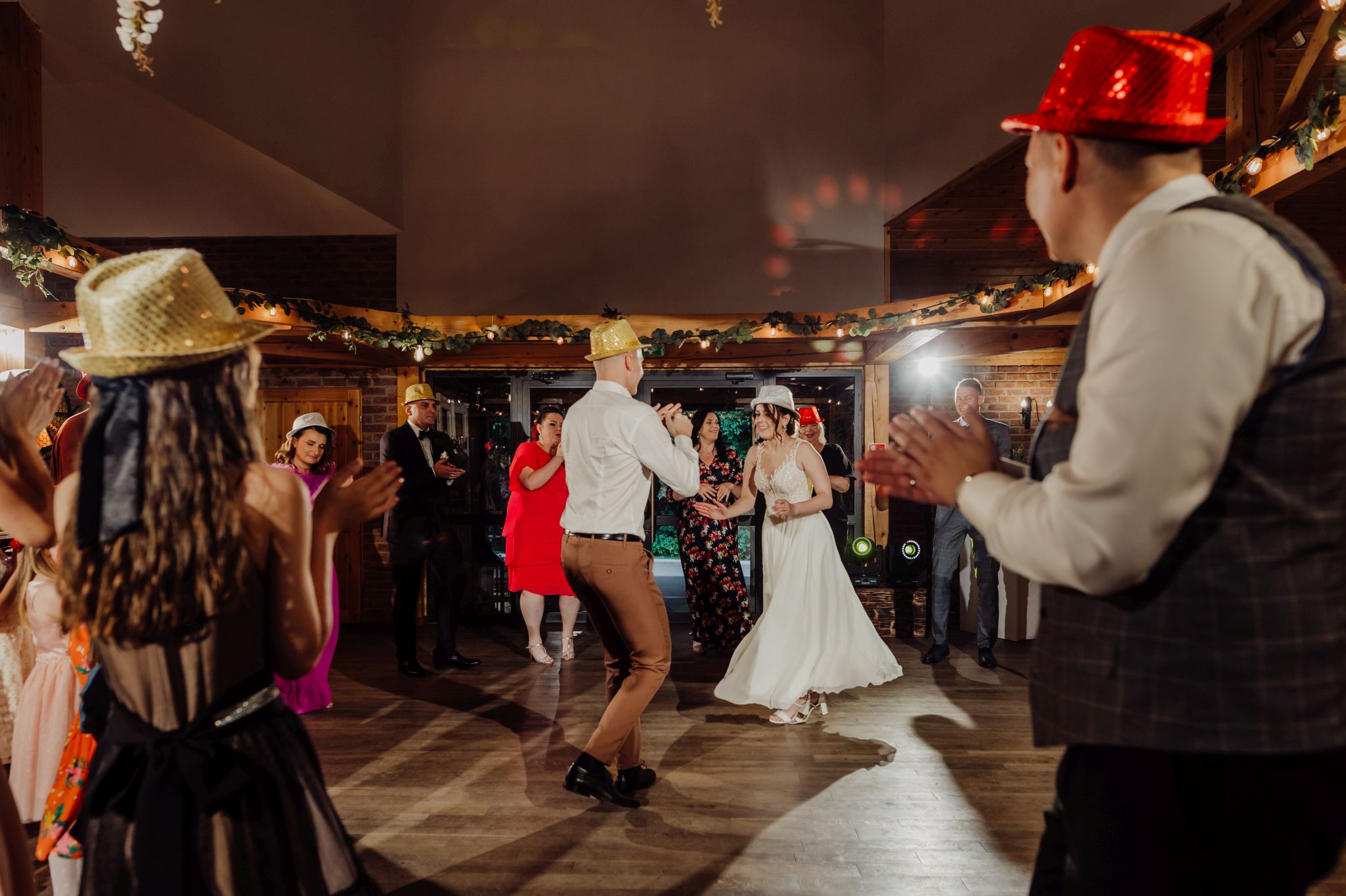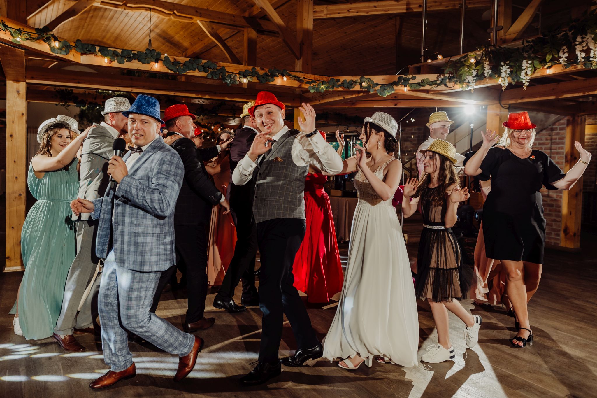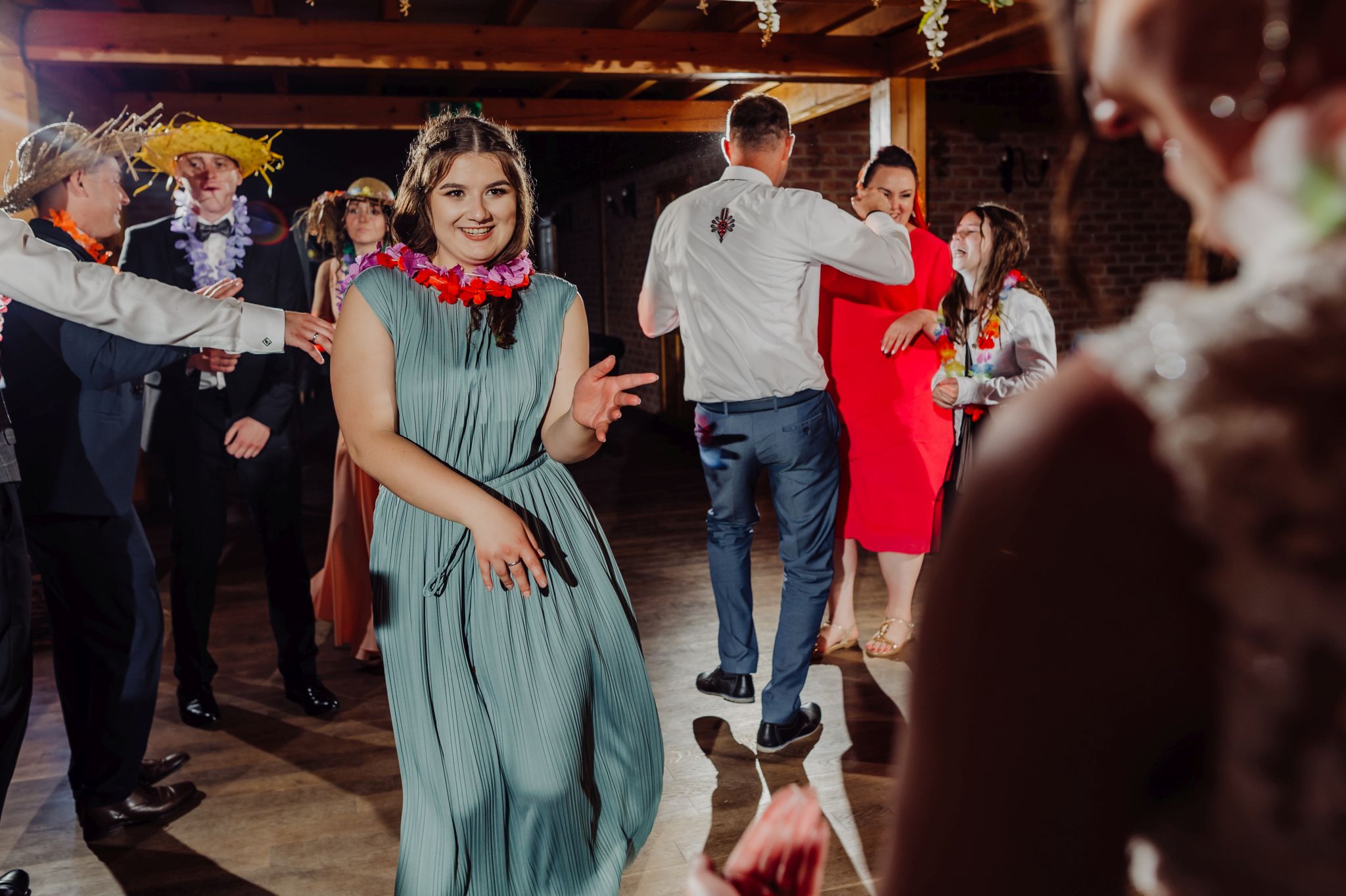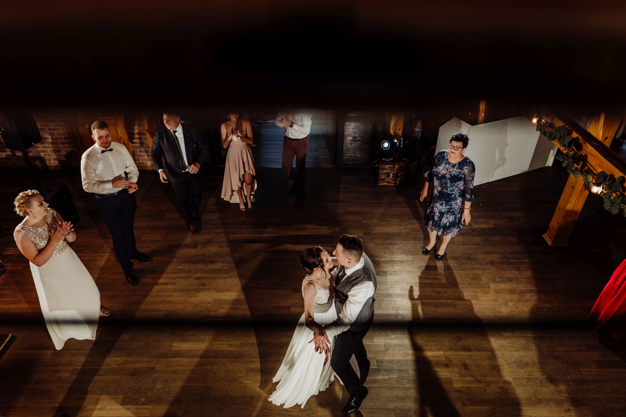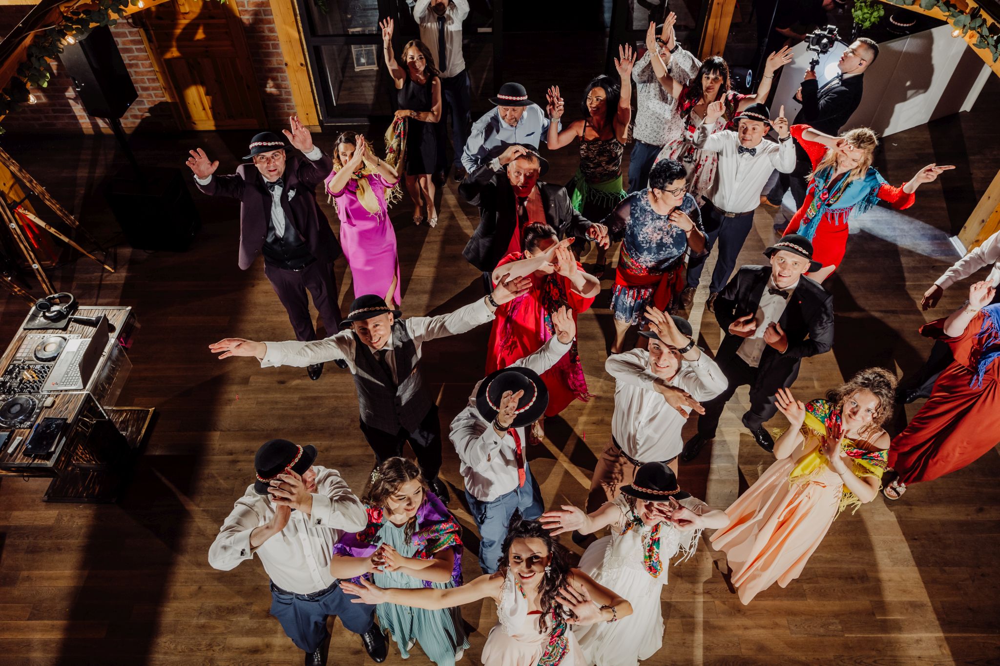 Energia wesela rosła z każdą godziną — od pierwszego tańca w ciężkim dymie, przez spontaniczne momenty na parkiecie, aż po totalny luz pod koniec nocy. DJ zrobił robotę, ale najważniejsze było to, że ludzie po prostu chcieli się bawić.