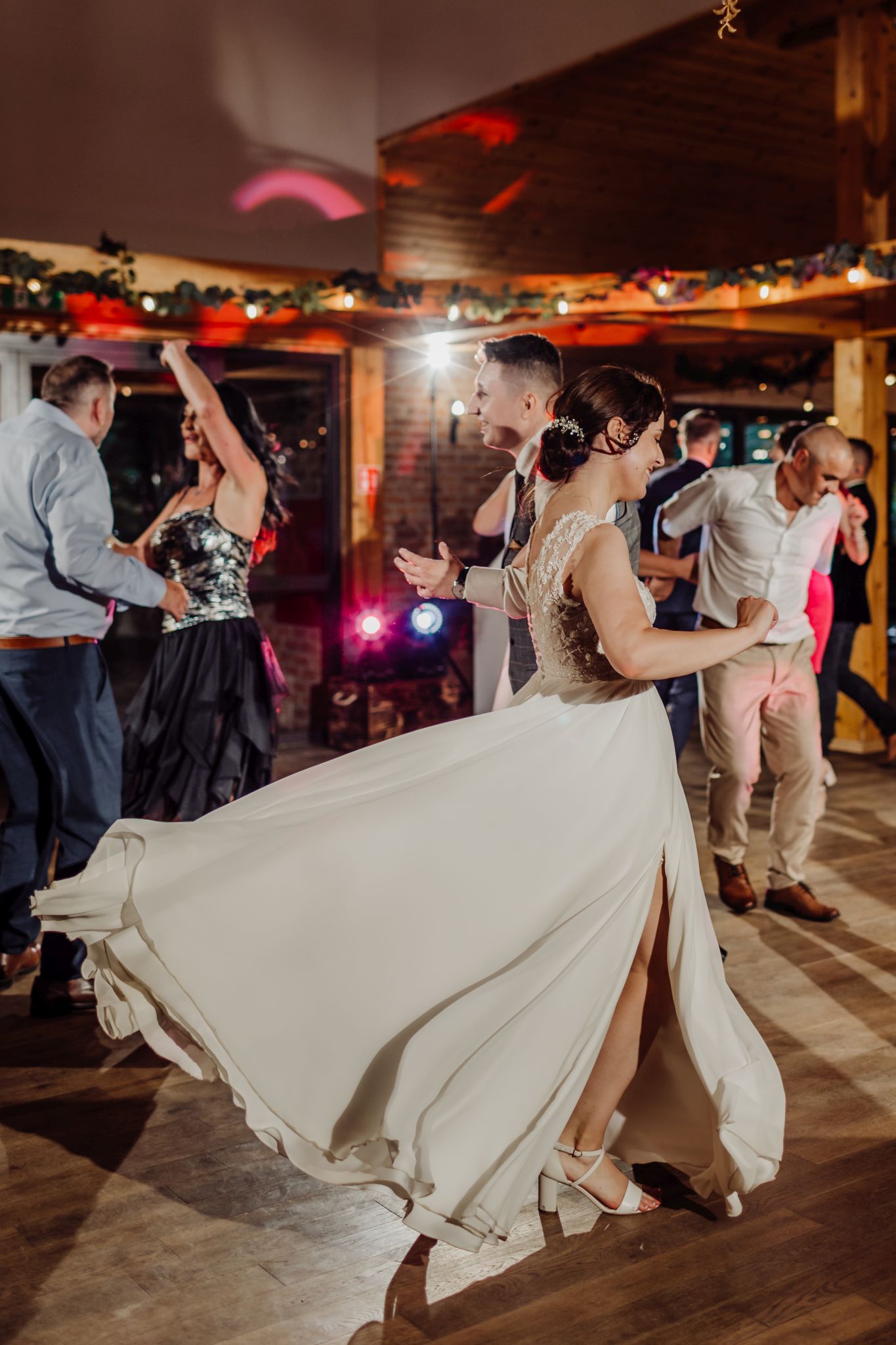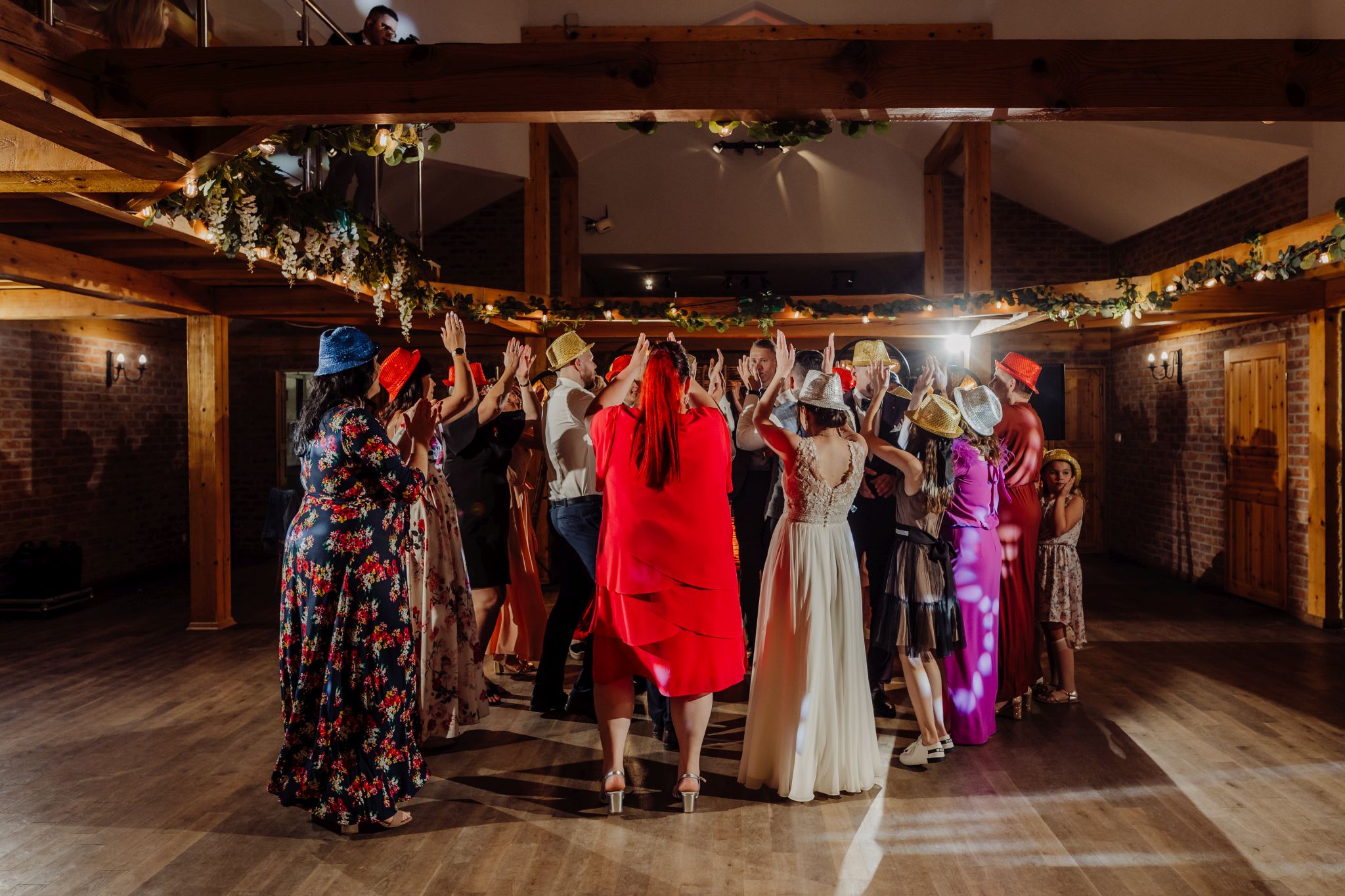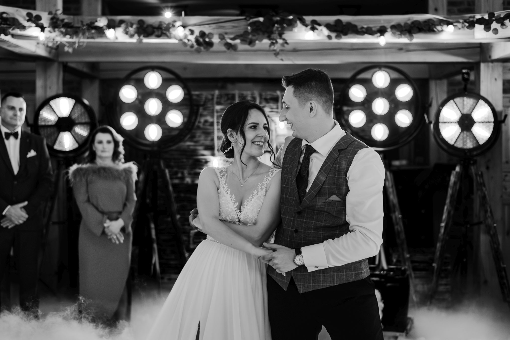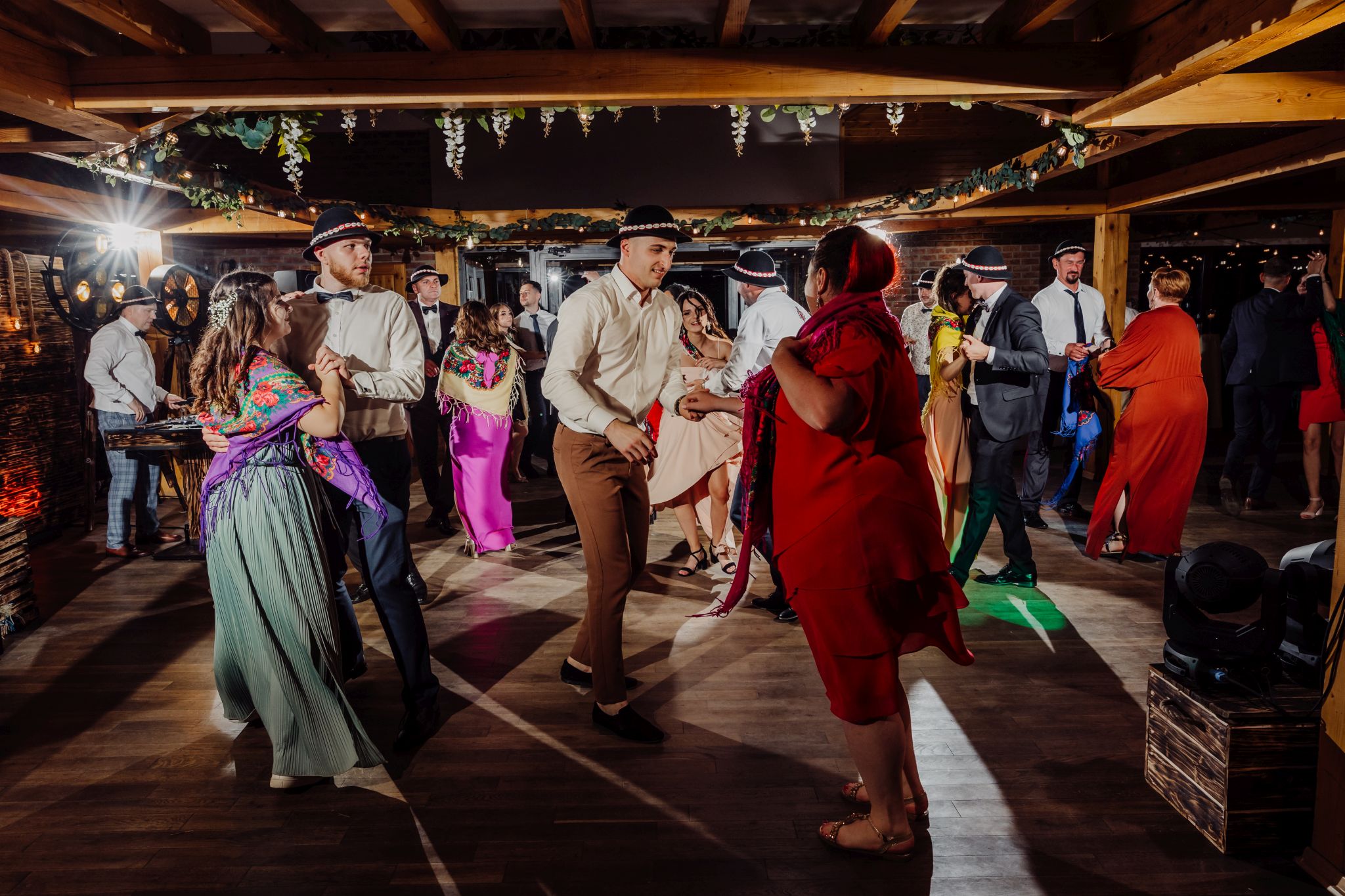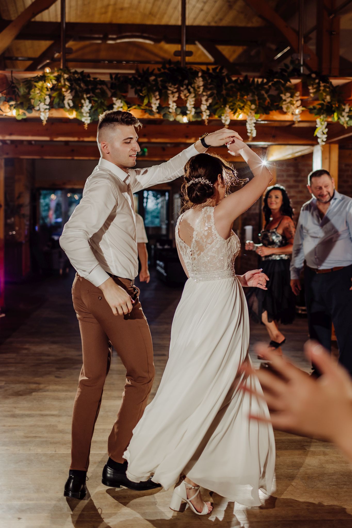 Energia wesela rosła z każdą godziną — od pierwszego tańca w ciężkim dymie, przez spontaniczne momenty na parkiecie, aż po totalny luz pod koniec nocy. DJ zrobił robotę, ale najważniejsze było to, że ludzie po prostu chcieli się bawić.