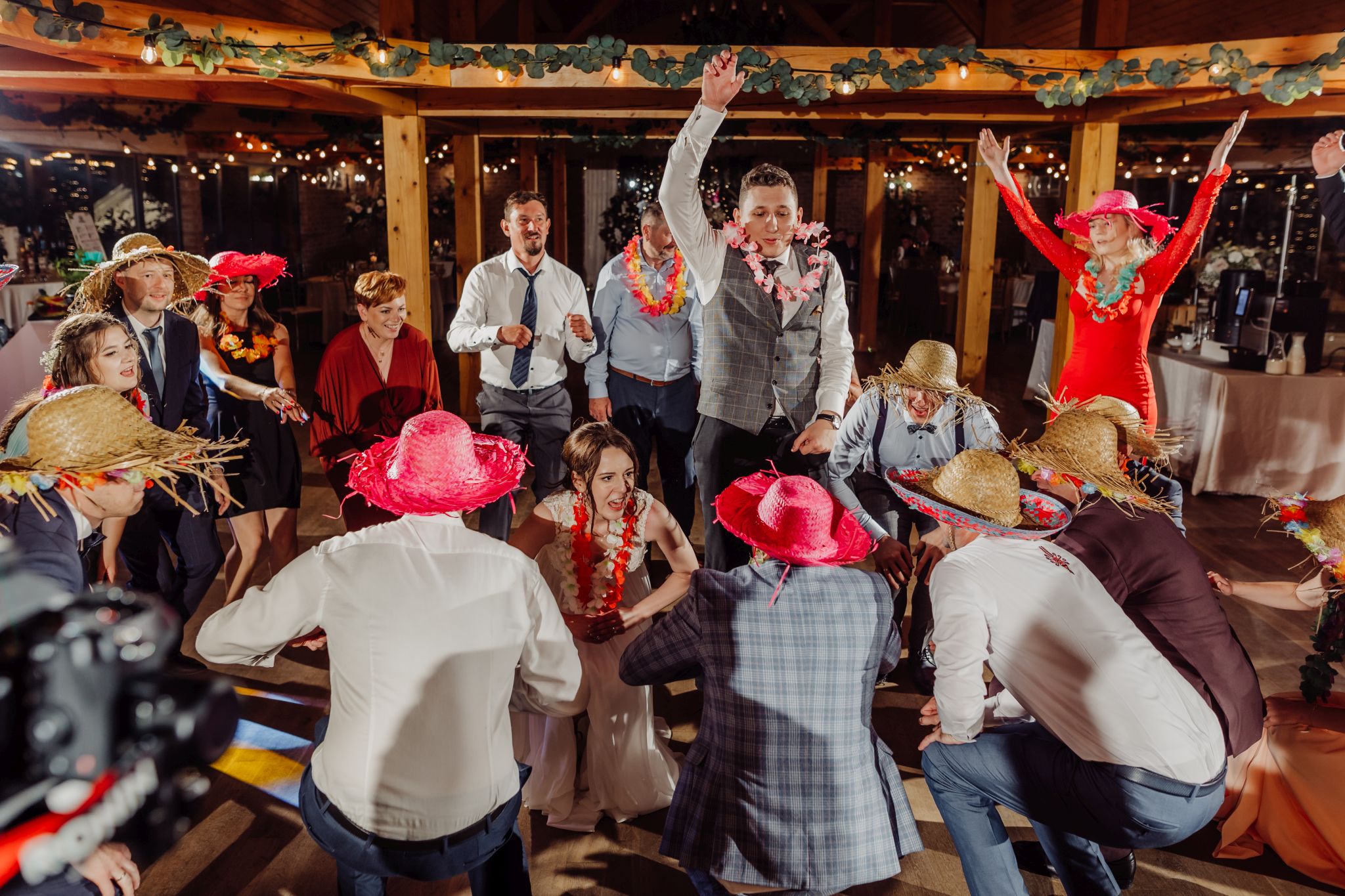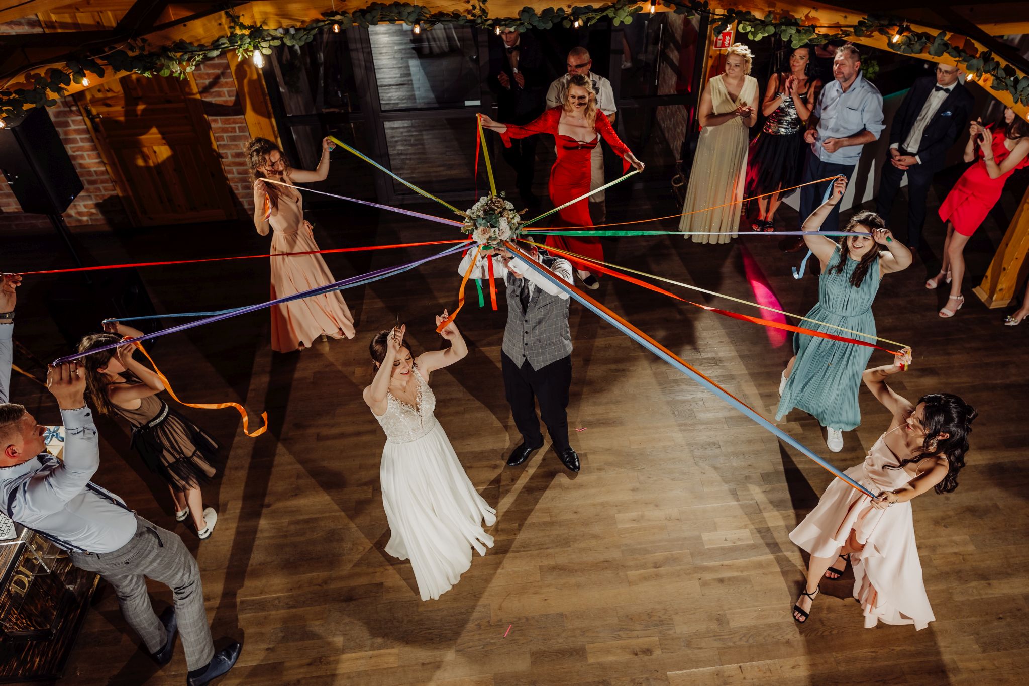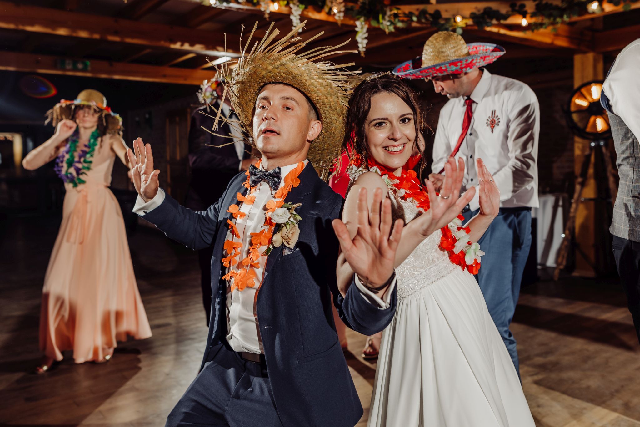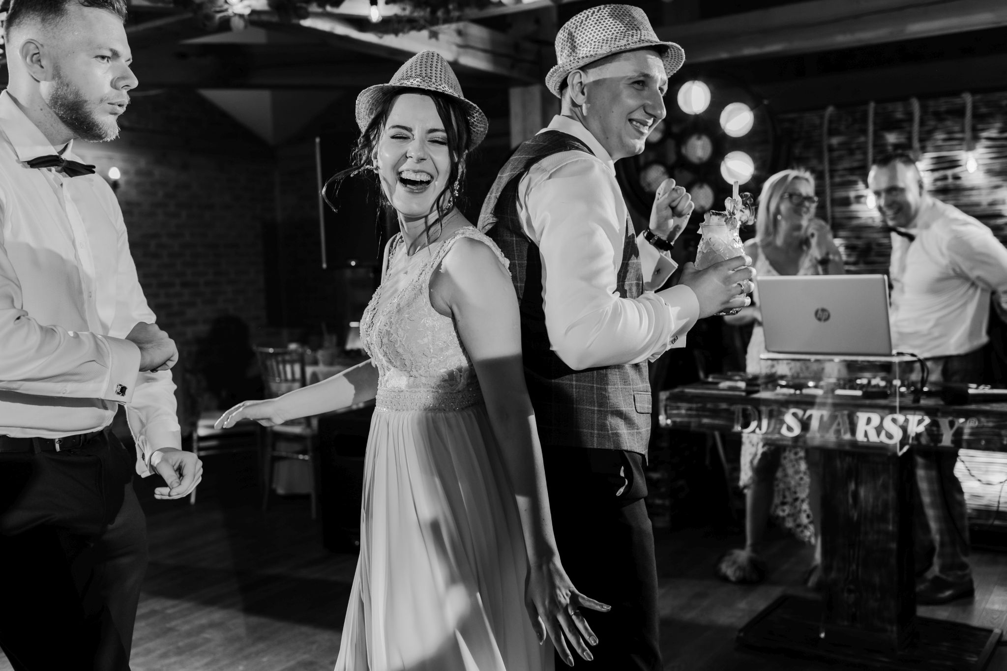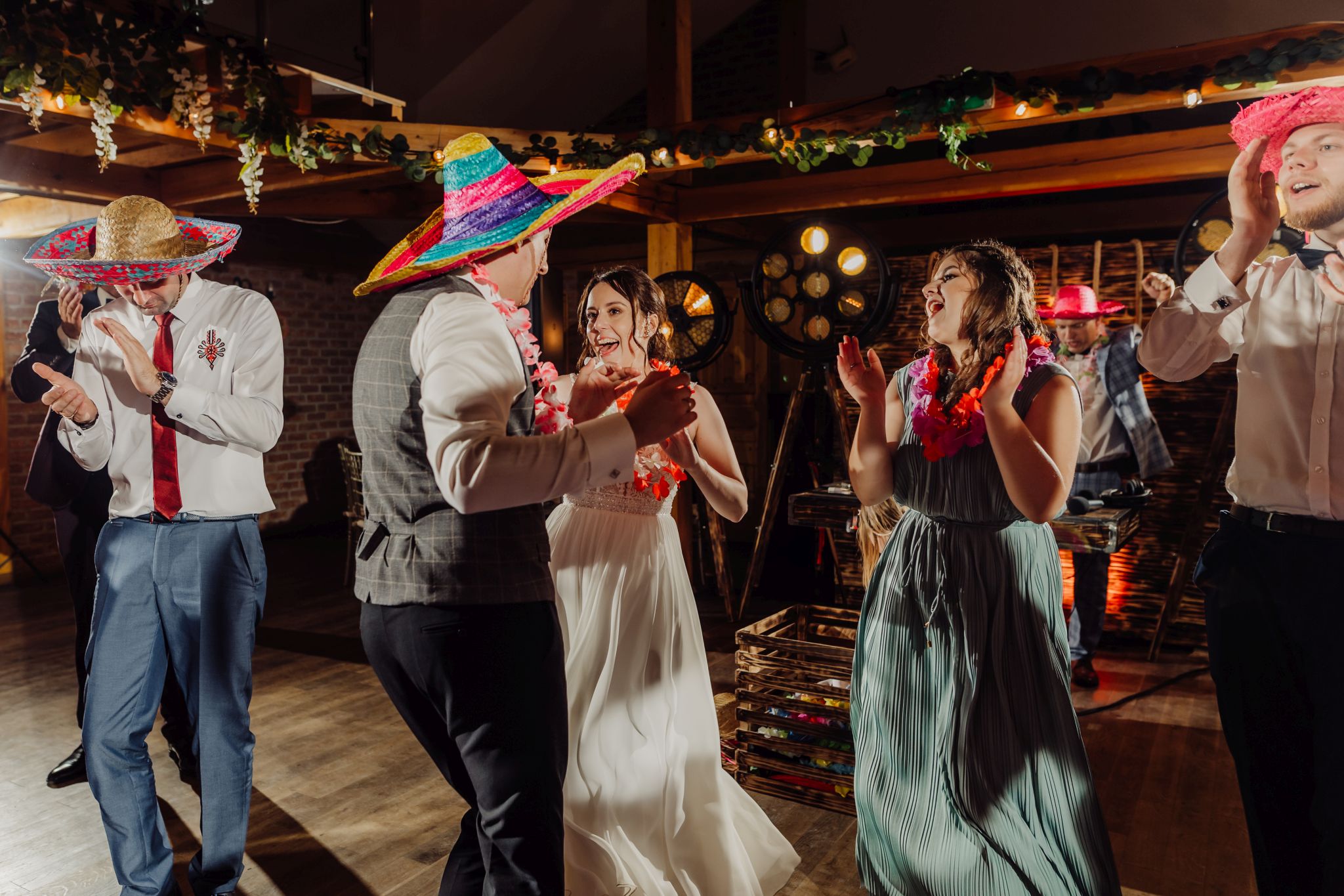 Energia wesela rosła z każdą godziną — od pierwszego tańca w ciężkim dymie, przez spontaniczne momenty na parkiecie, aż po totalny luz pod koniec nocy. DJ zrobił robotę, ale najważniejsze było to, że ludzie po prostu chcieli się bawić.