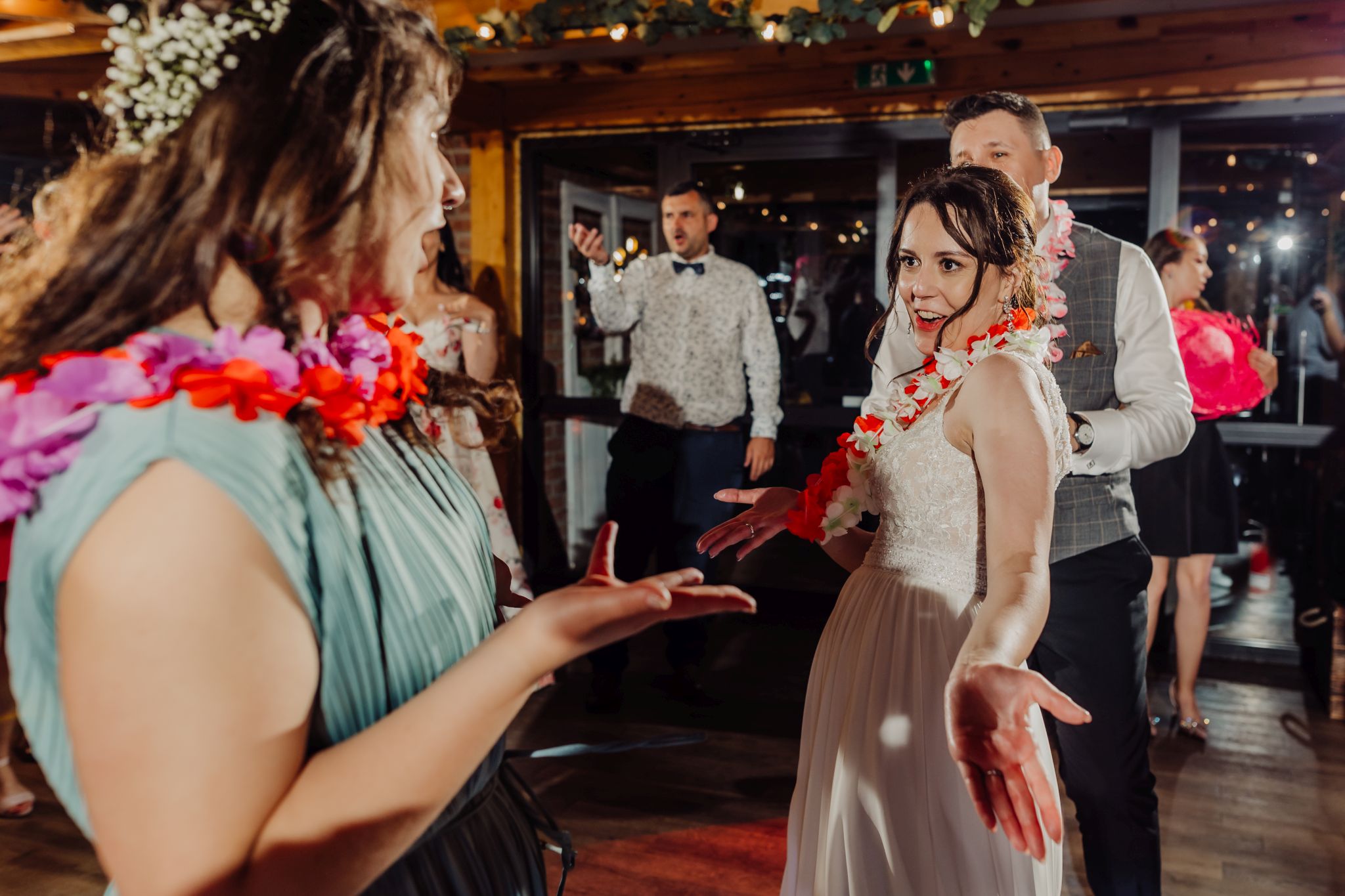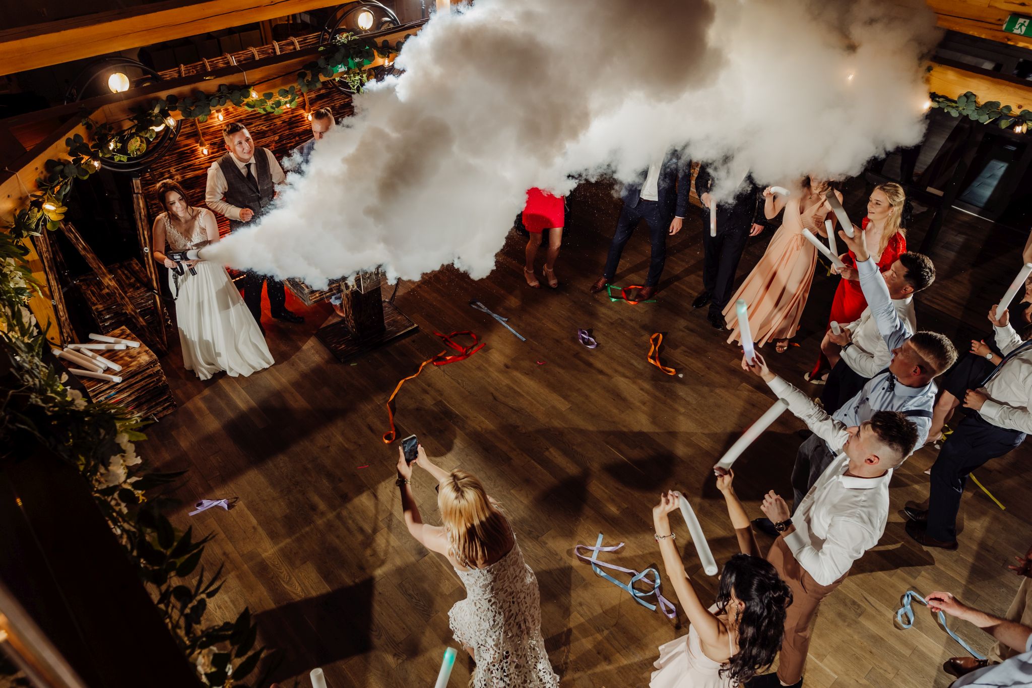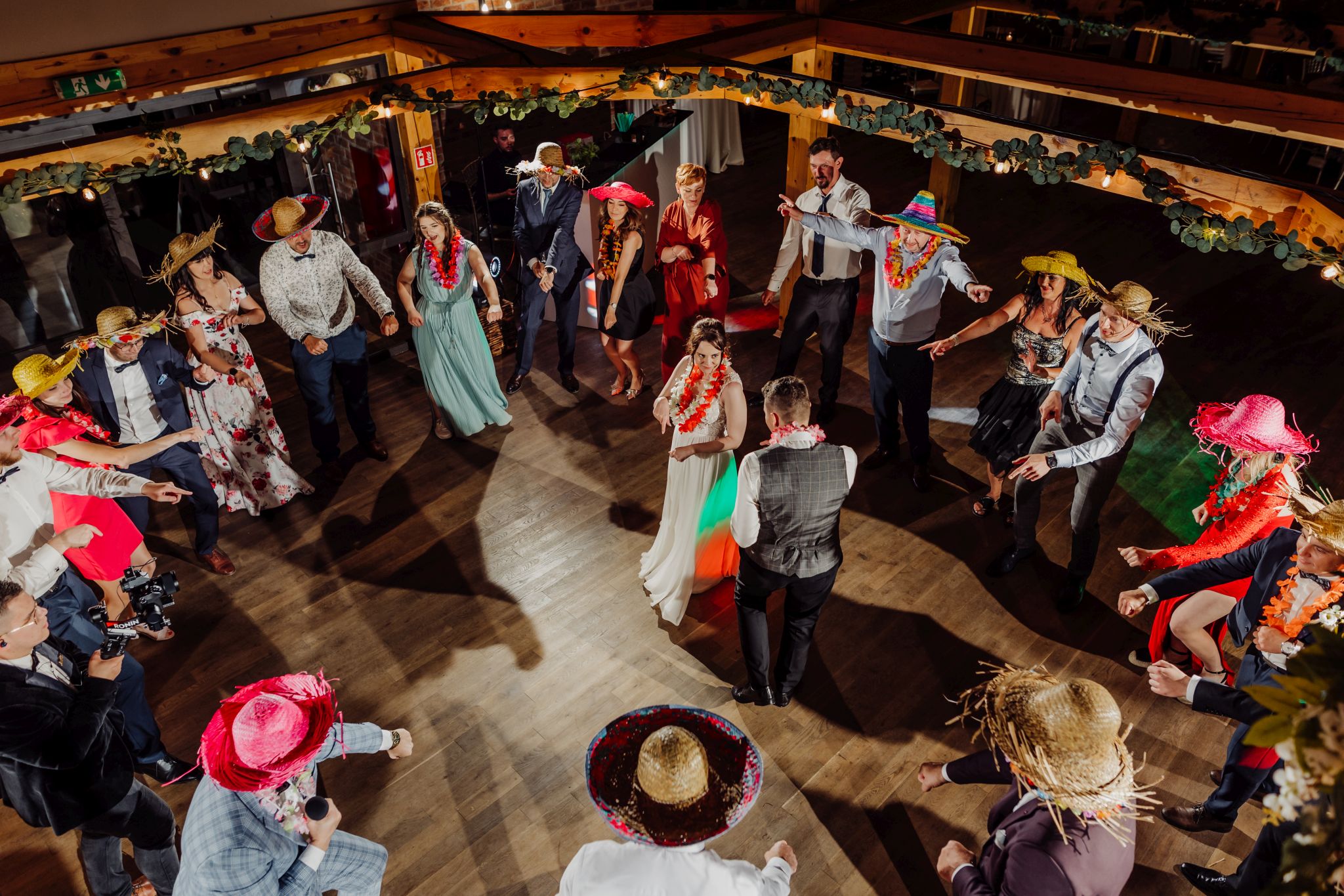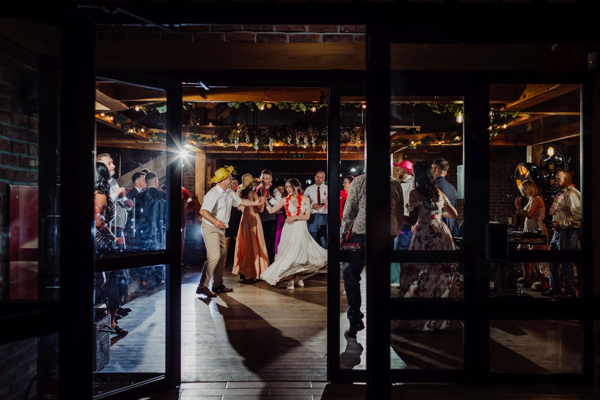 Energia wesela rosła z każdą godziną — od pierwszego tańca w ciężkim dymie, przez spontaniczne momenty na parkiecie, aż po totalny luz pod koniec nocy. DJ zrobił robotę, ale najważniejsze było to, że ludzie po prostu chcieli się bawić.