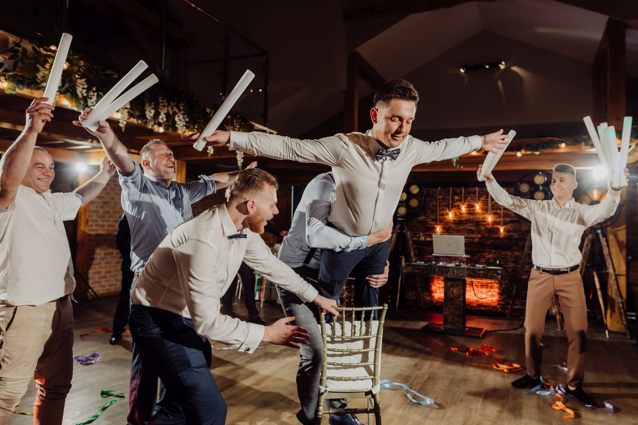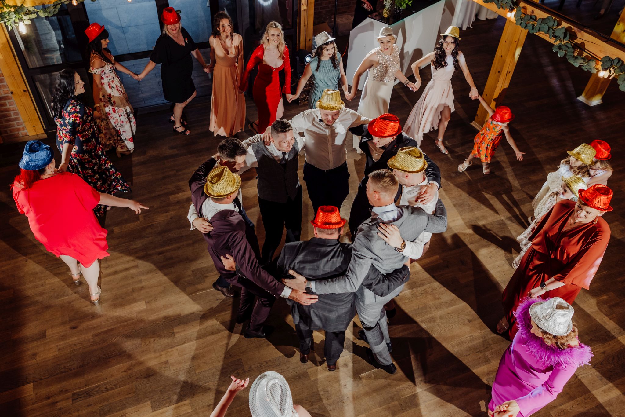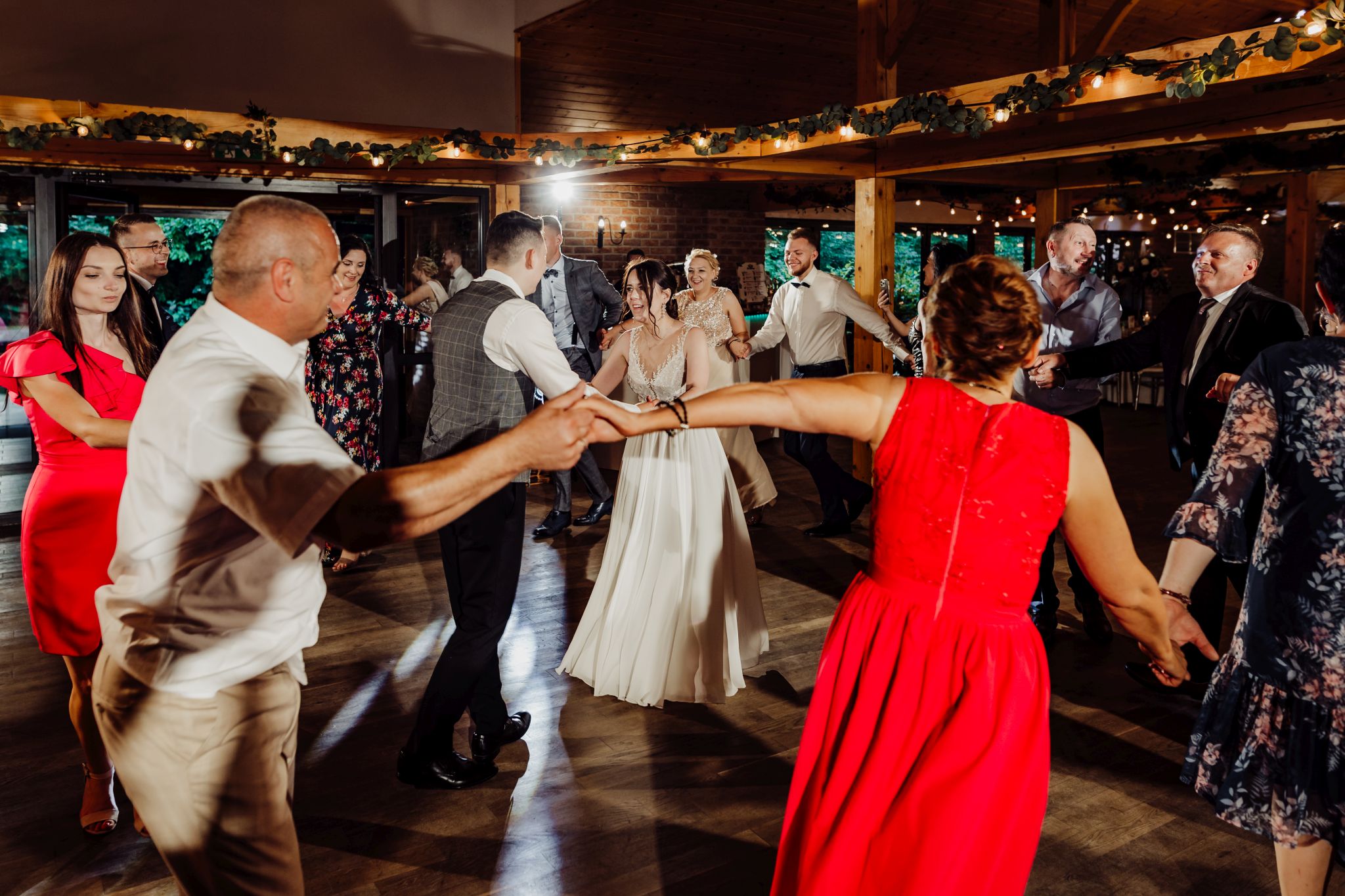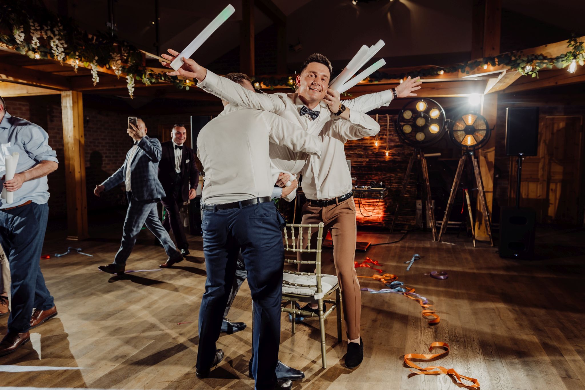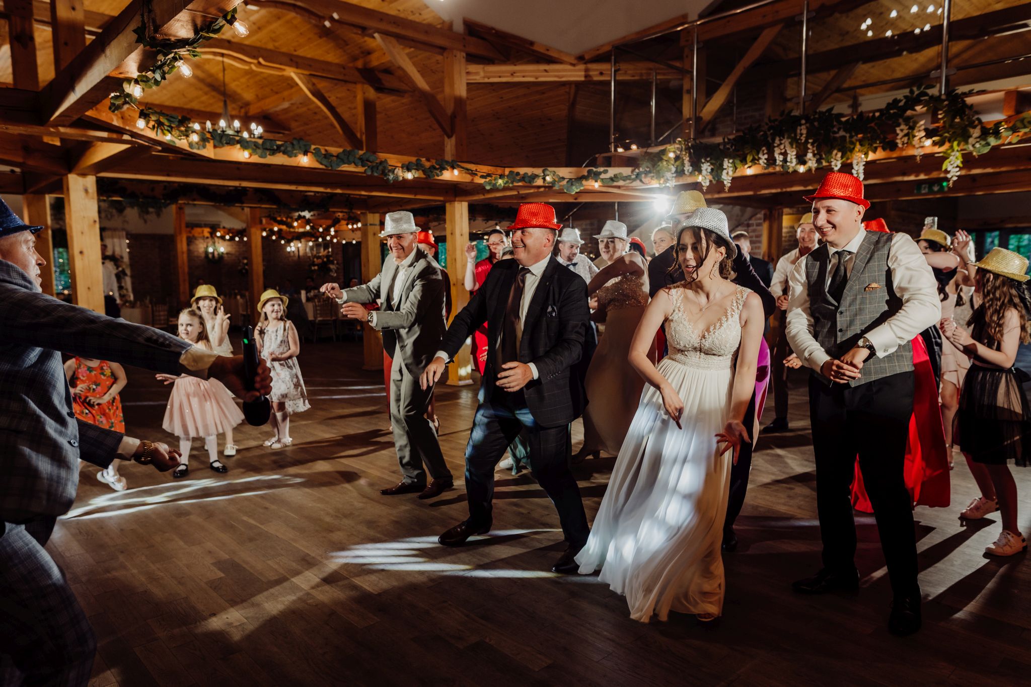 Energia wesela rosła z każdą godziną — od pierwszego tańca w ciężkim dymie, przez spontaniczne momenty na parkiecie, aż po totalny luz pod koniec nocy. DJ zrobił robotę, ale najważniejsze było to, że ludzie po prostu chcieli się bawić.