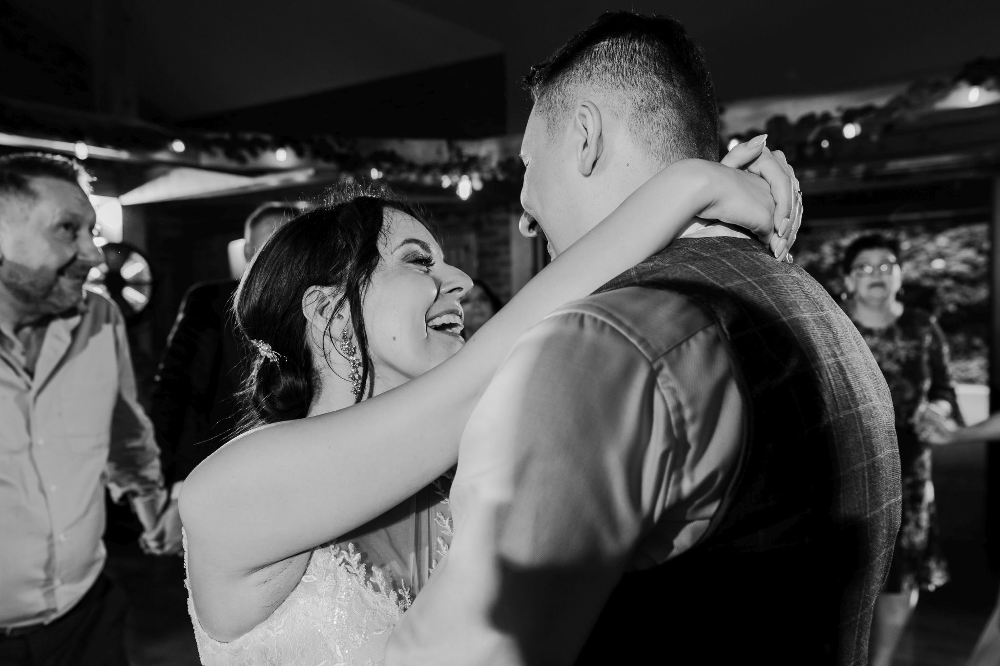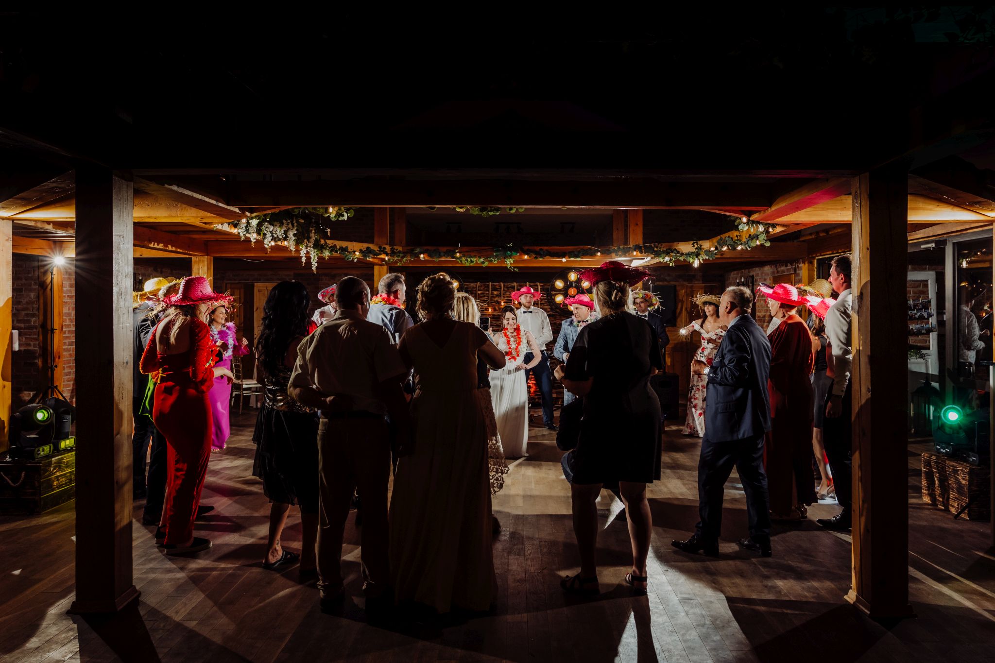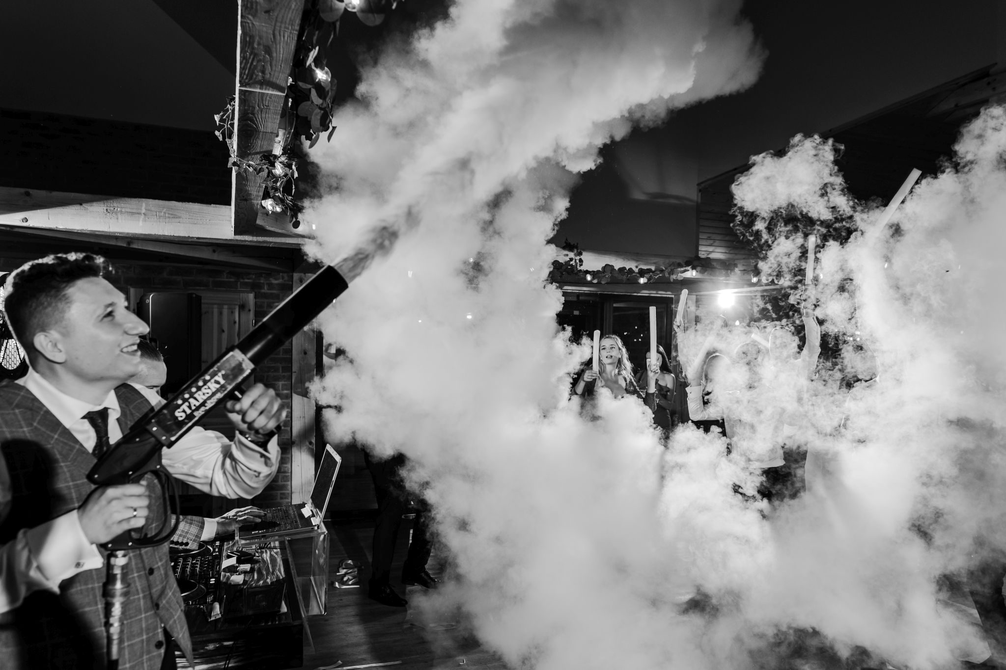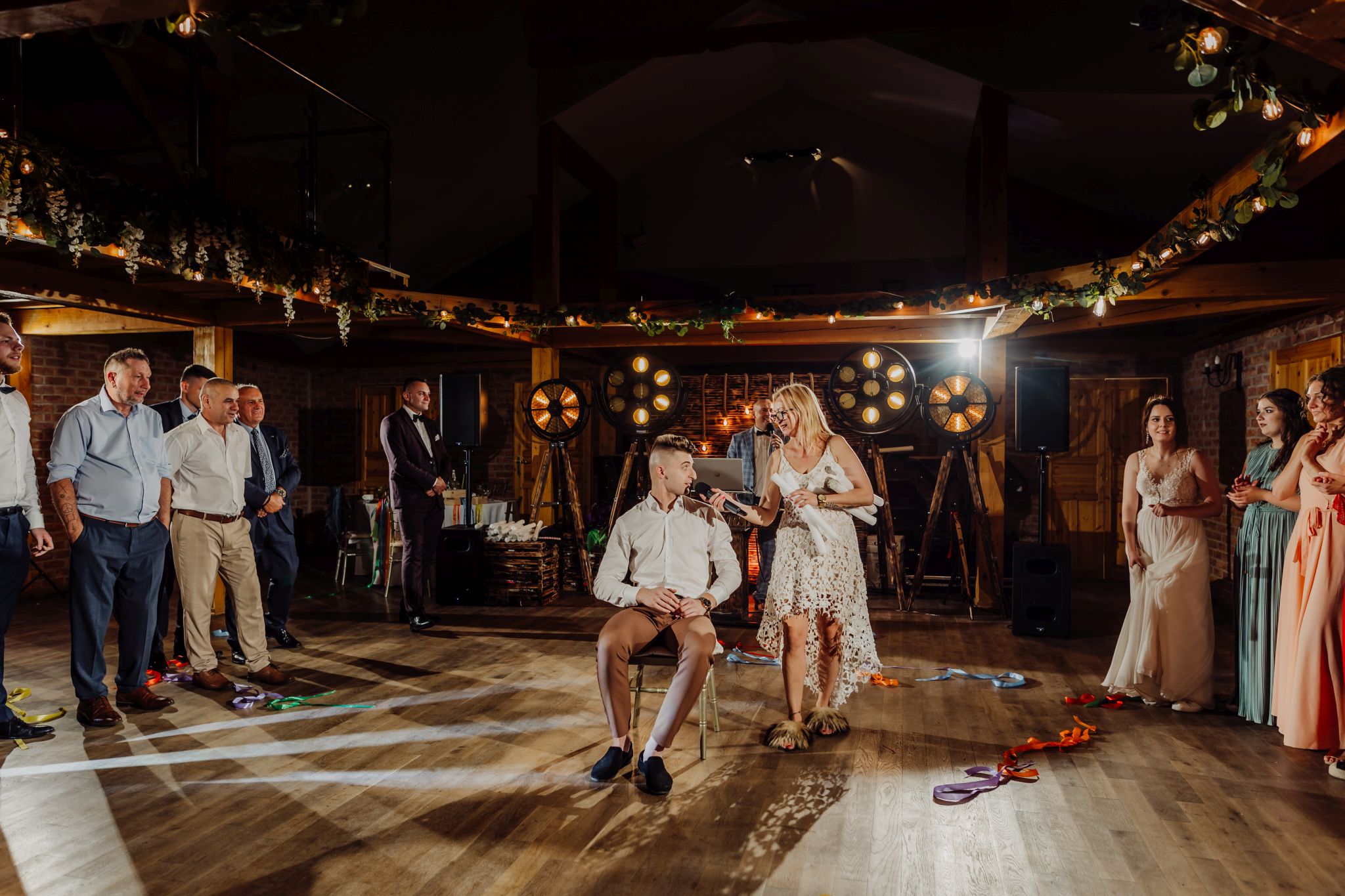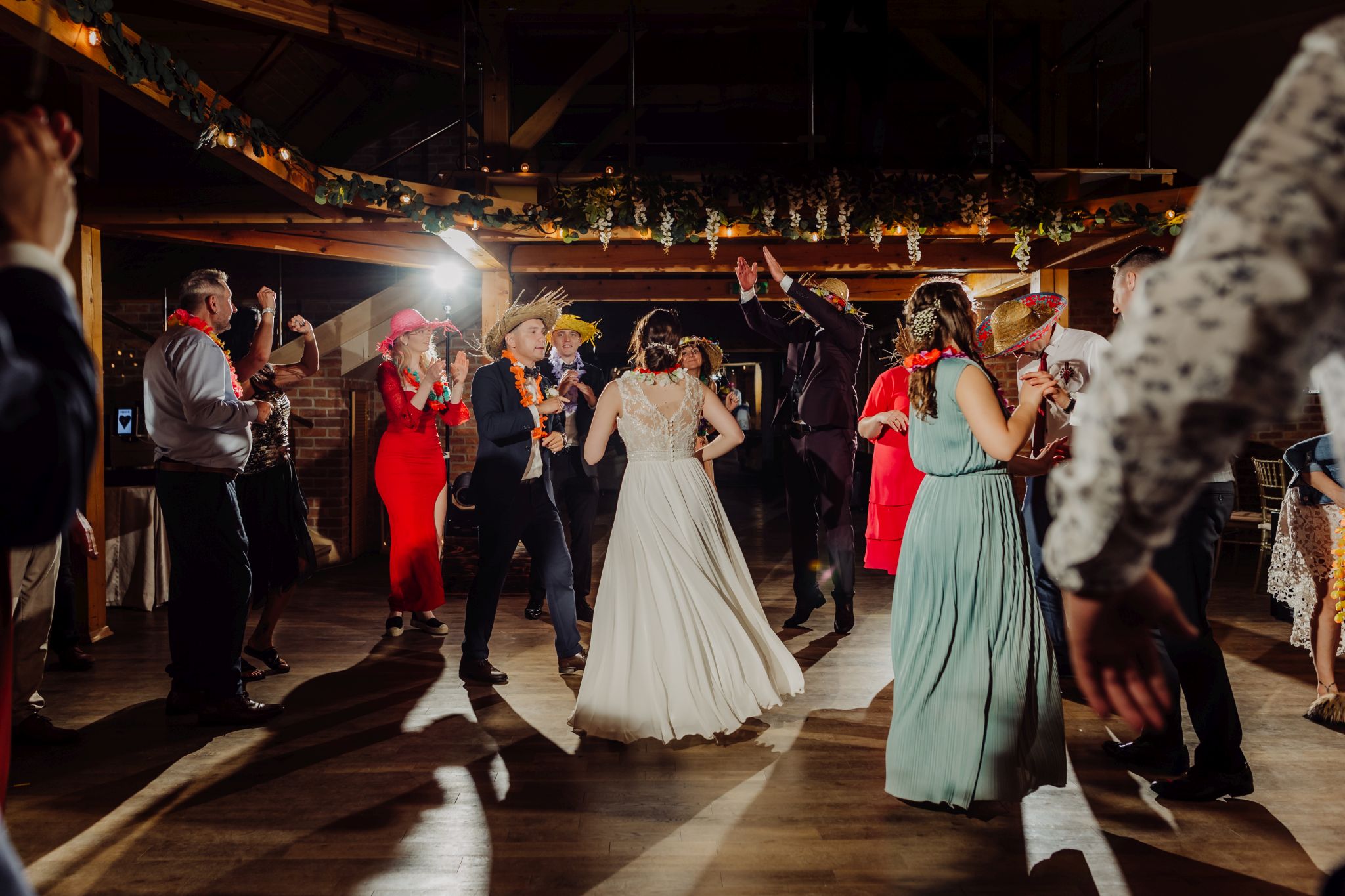 Energia wesela rosła z każdą godziną — od pierwszego tańca w ciężkim dymie, przez spontaniczne momenty na parkiecie, aż po totalny luz pod koniec nocy. DJ zrobił robotę, ale najważniejsze było to, że ludzie po prostu chcieli się bawić.