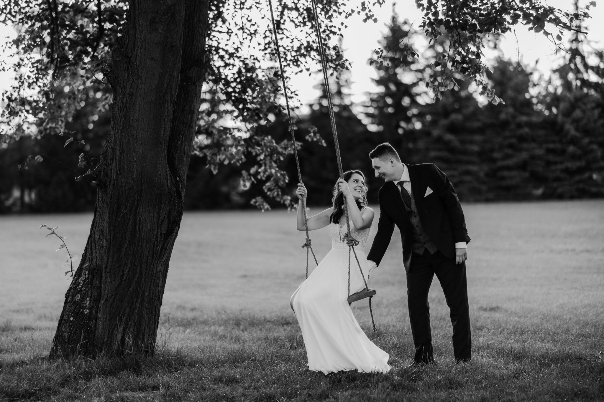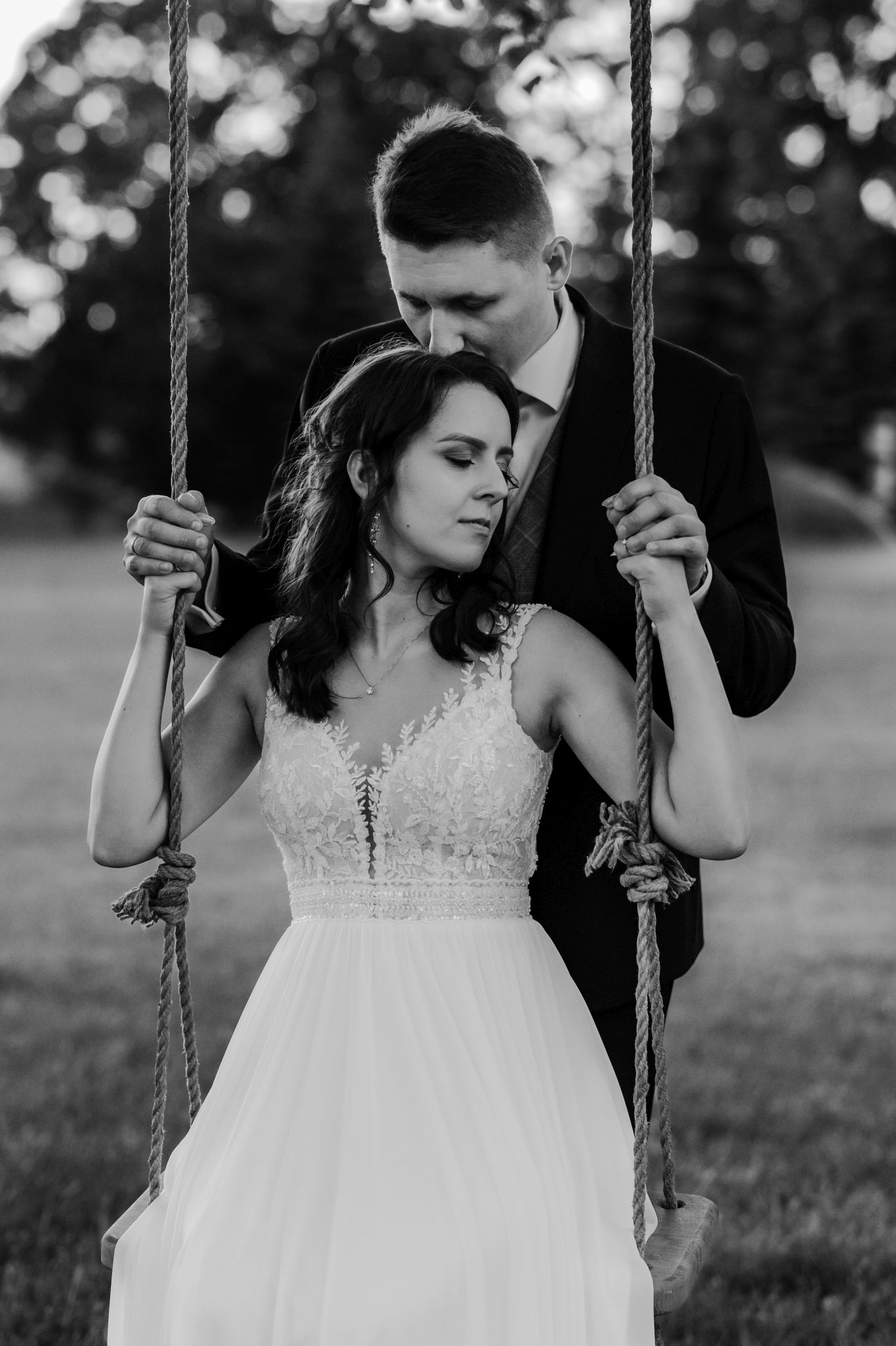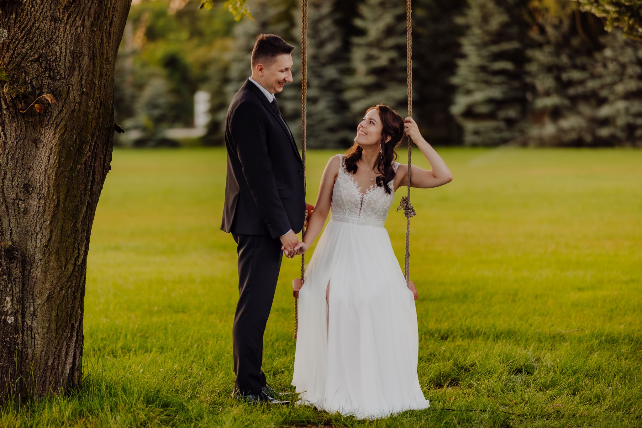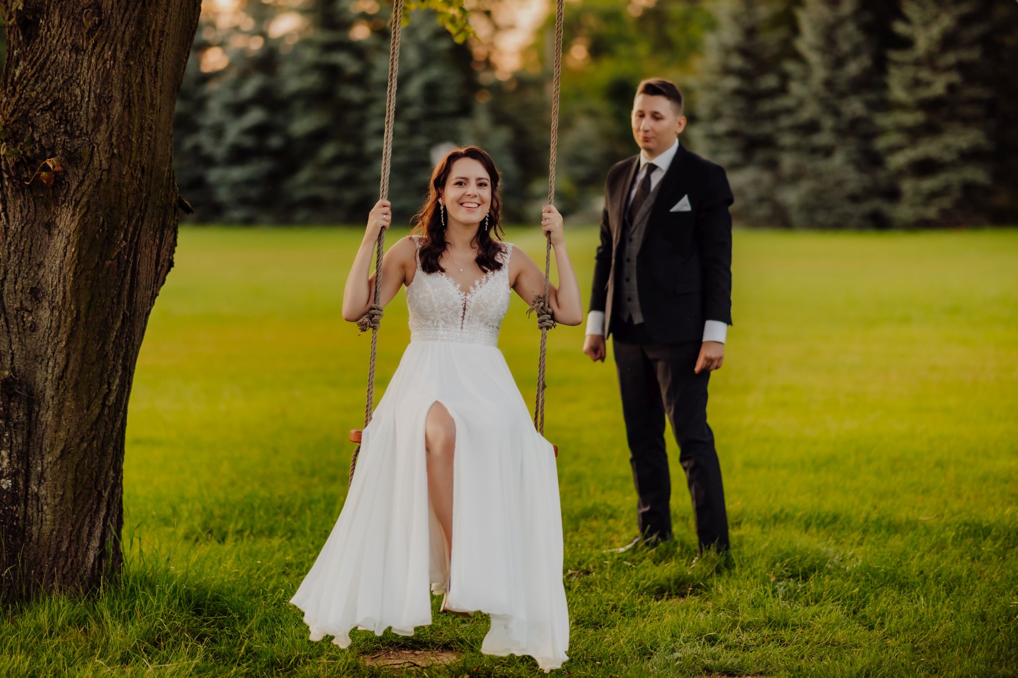 Sesja plenerowa w Małeszowej to zupełnie inny klimat niż dzień ślubu — więcej ciszy, więcej przestrzeni i moment, żeby na chwilę się zatrzymać. Takie zakończenie dobrze domyka całą historię.